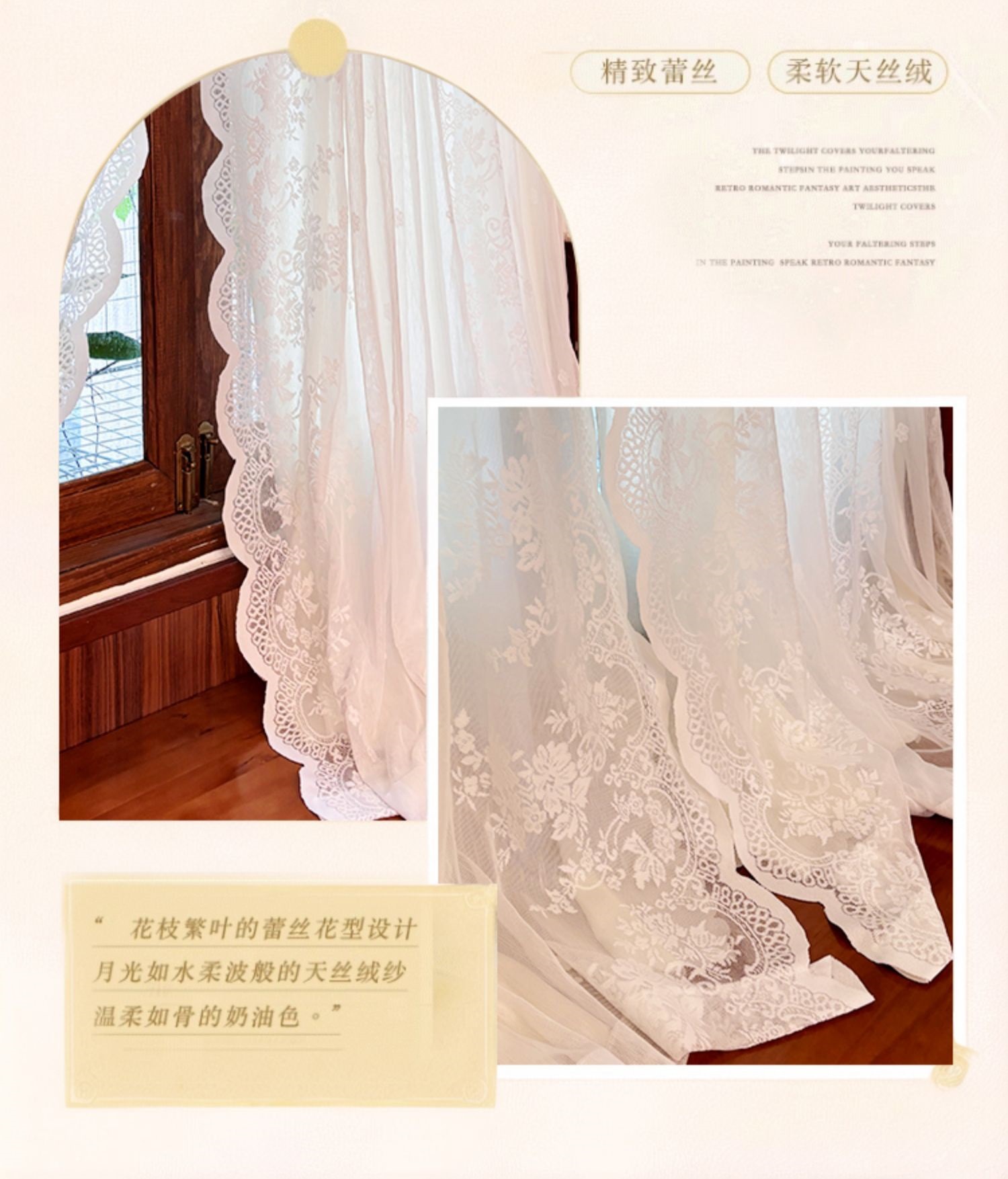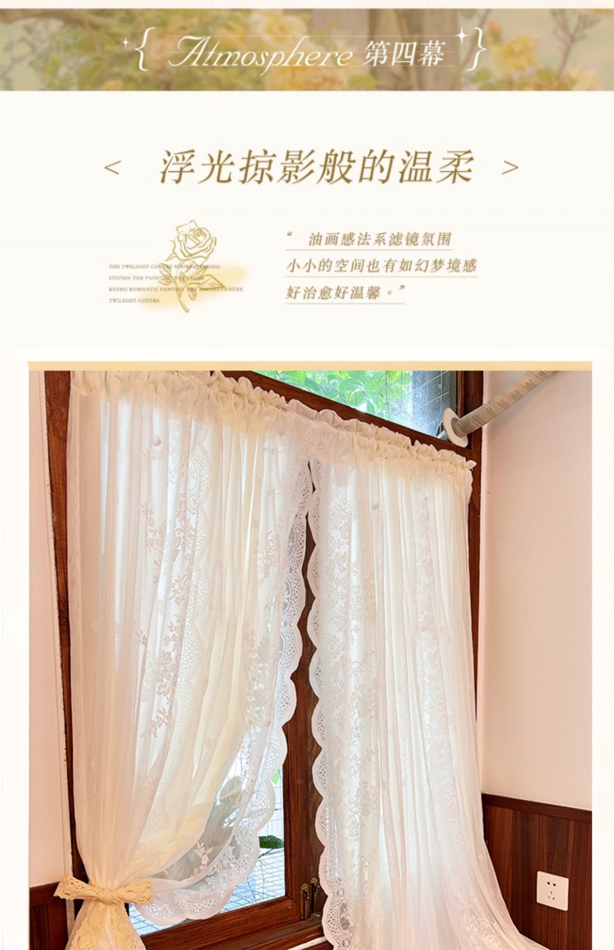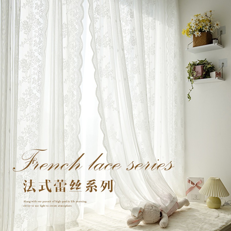 실이 있는 더블 레이어 공주 창 침실 스타일의 가벼운 고급 웨이브 프렌치 거즈 커튼, 빛을 투과하지 않고 레이스 크림 커튼스토어 가기