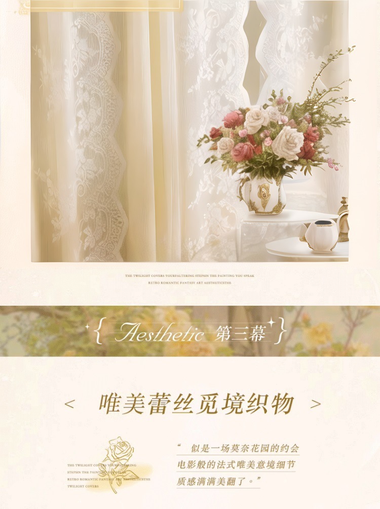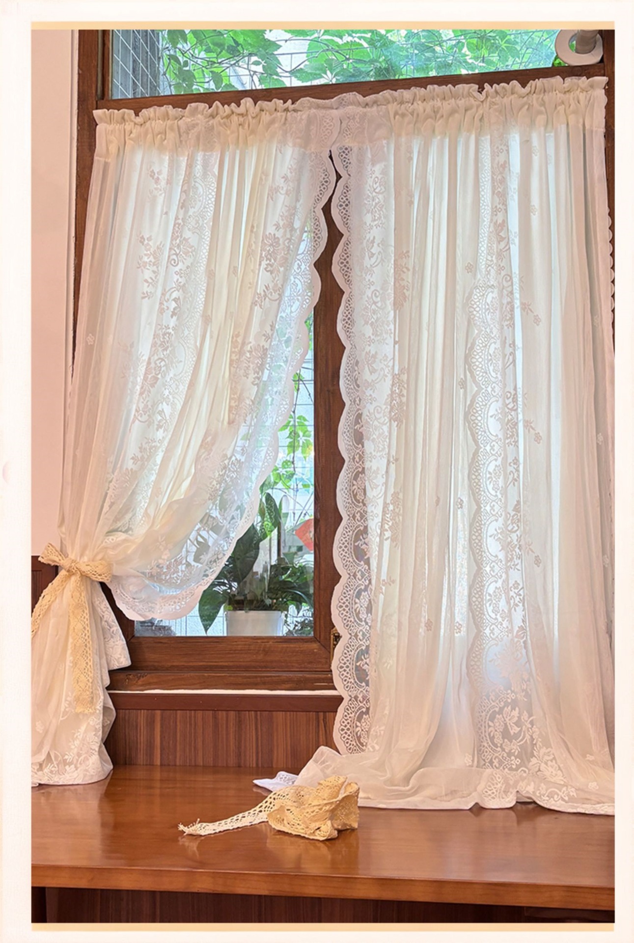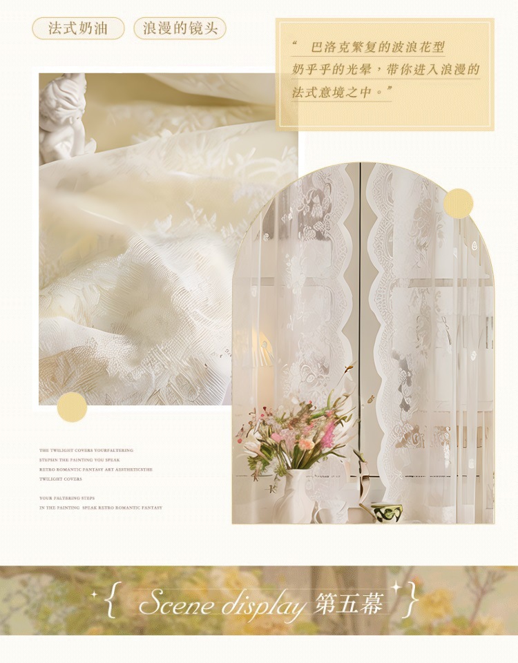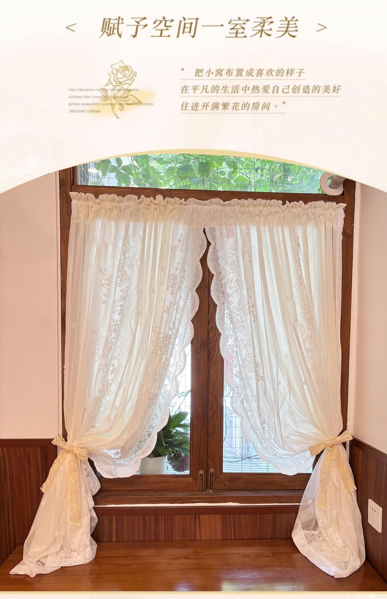 실이 있는 더블 레이어 공주 창 침실 스타일의 가벼운 고급 웨이브 프렌치 거즈 커튼, 빛을 투과하지 않고 레이스 크림 커튼스토어 가기