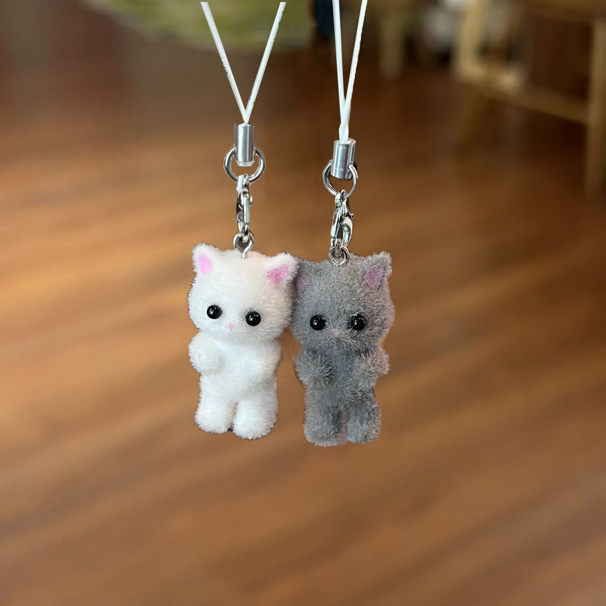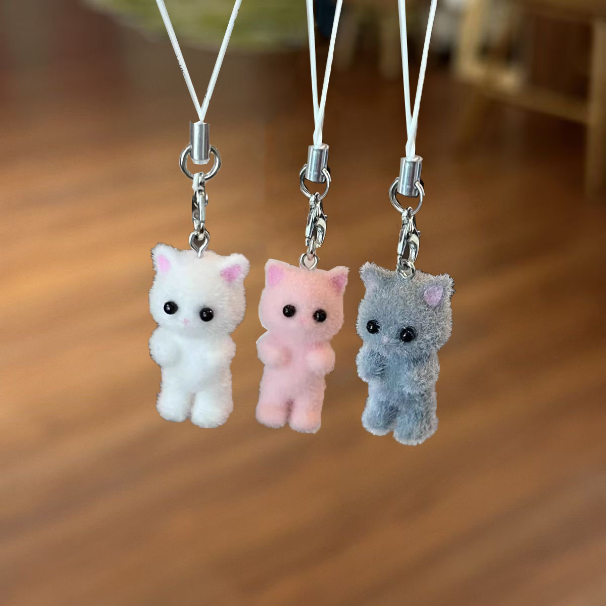 플록 펜던트 귀여운 입체 고양이 키 체인 휴대 전화 펜던트 DIY 수제 자동차 액세서리 키 체인