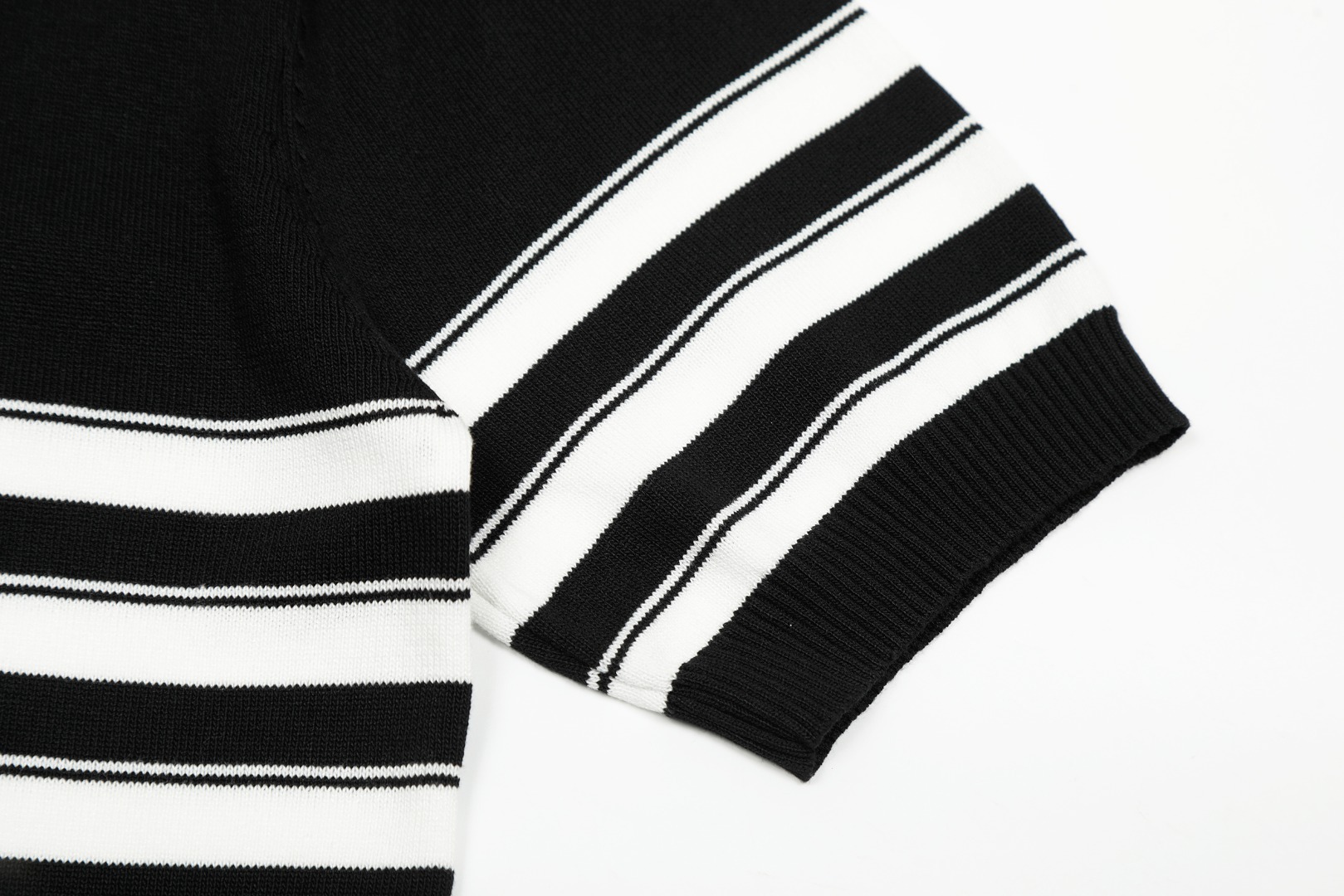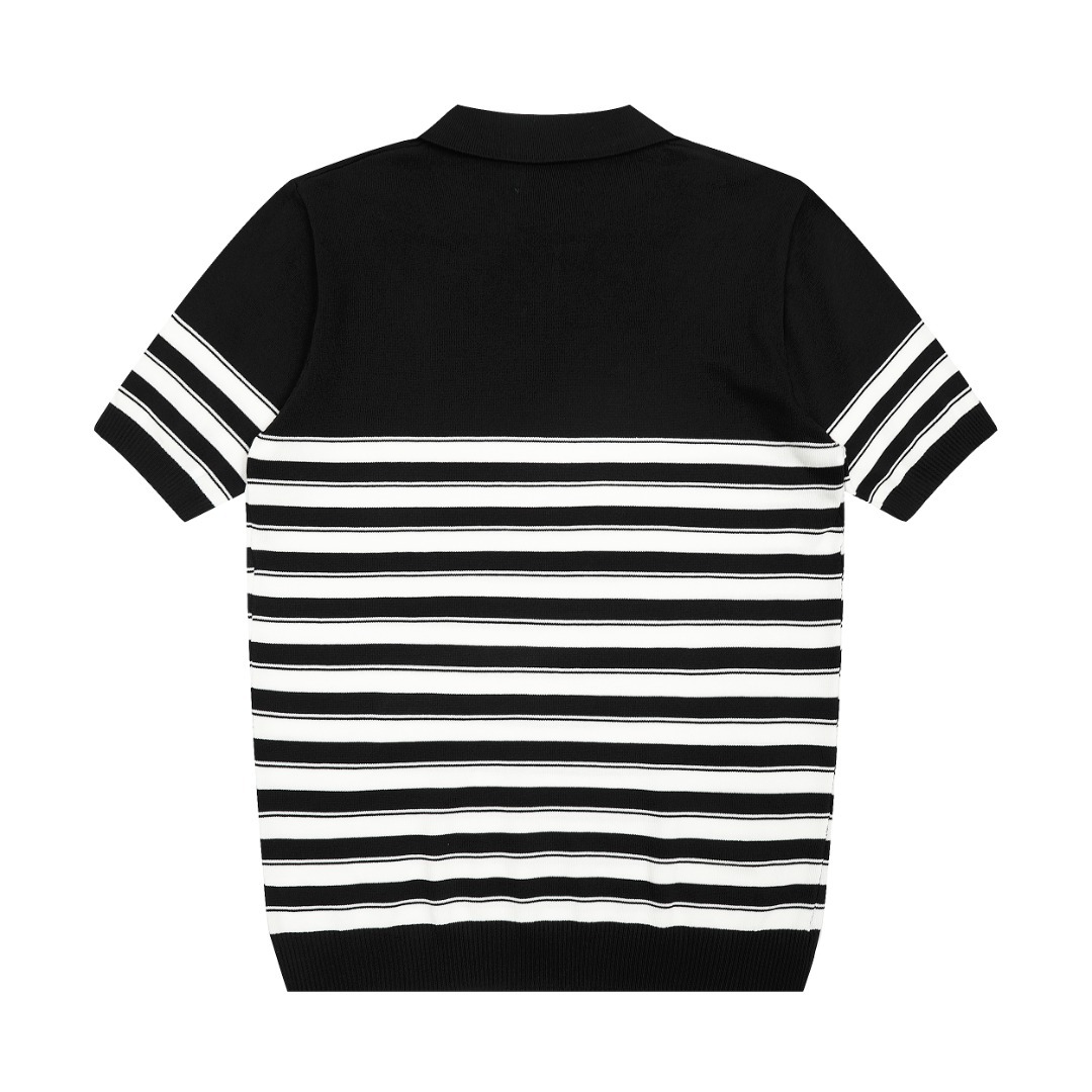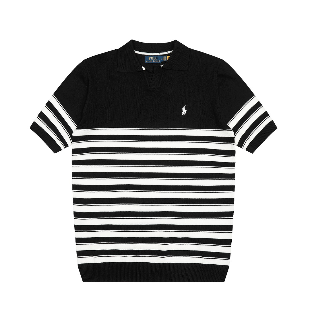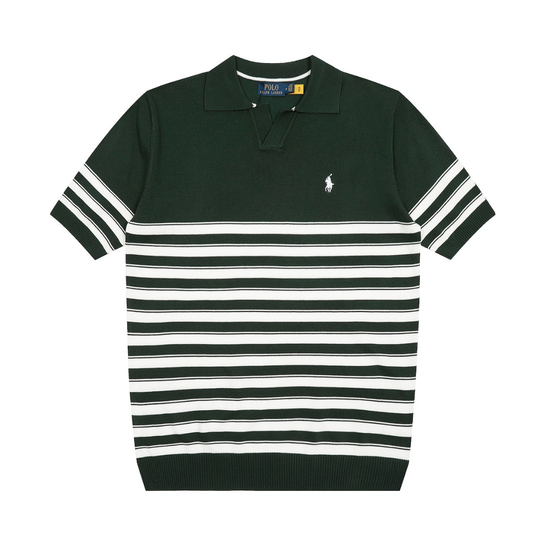 크로스보더 RL 러프 스트라이프 말 로고 자수 스몰 브이넥 니트 폴로 반팔 여름 신작 남성 고급 티셔츠
