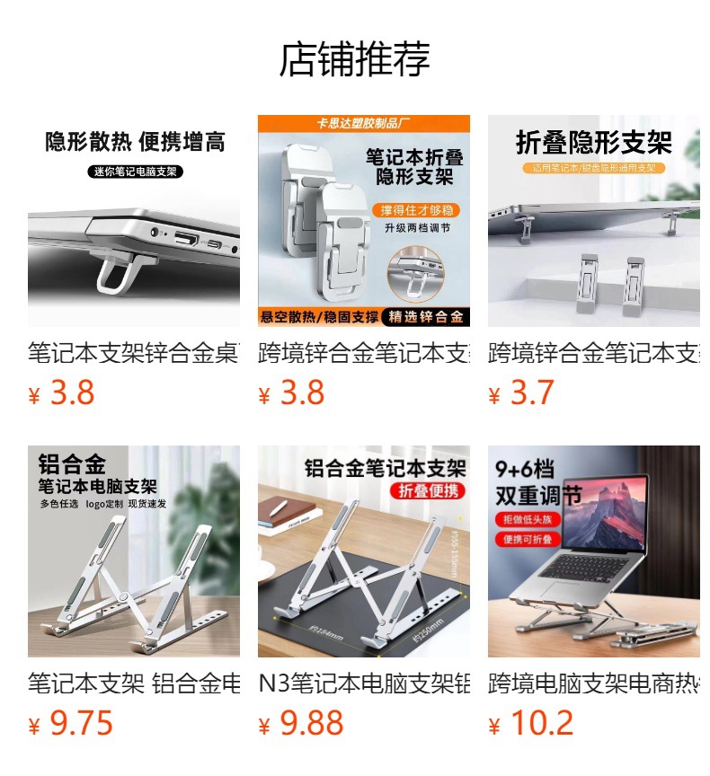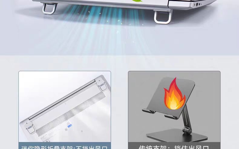 노트북 스탠드 아연 합금 데스크탑 컴퓨터 스탠드 높이 조절 접이식 보이지 않는 냉각 랙 태블릿 스탠드 크로스보더스토어 가기