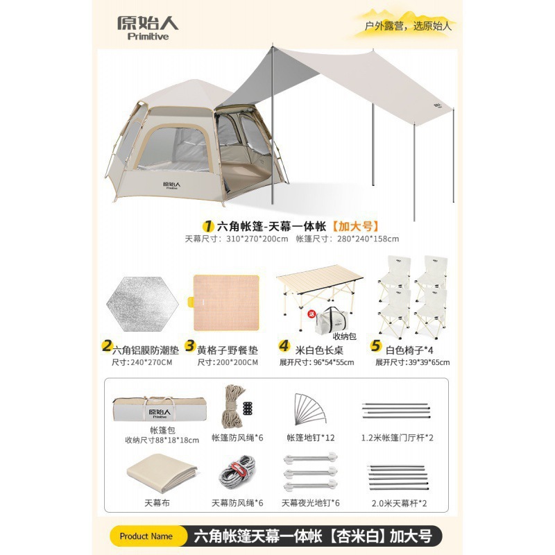 • [캐노피+텐트 특대형] [문 2개, 창문 4개] [경량 테이블과 의자 세트]