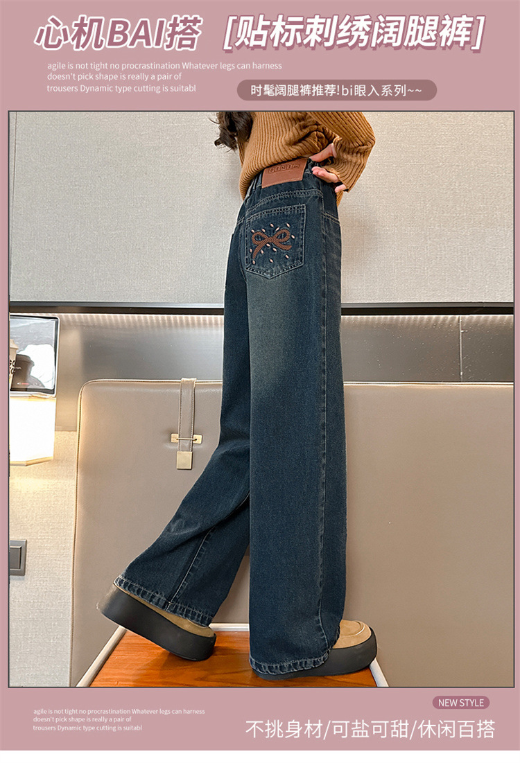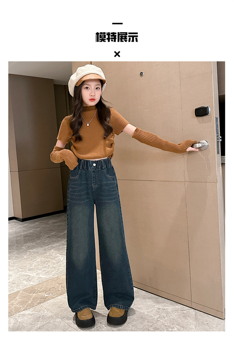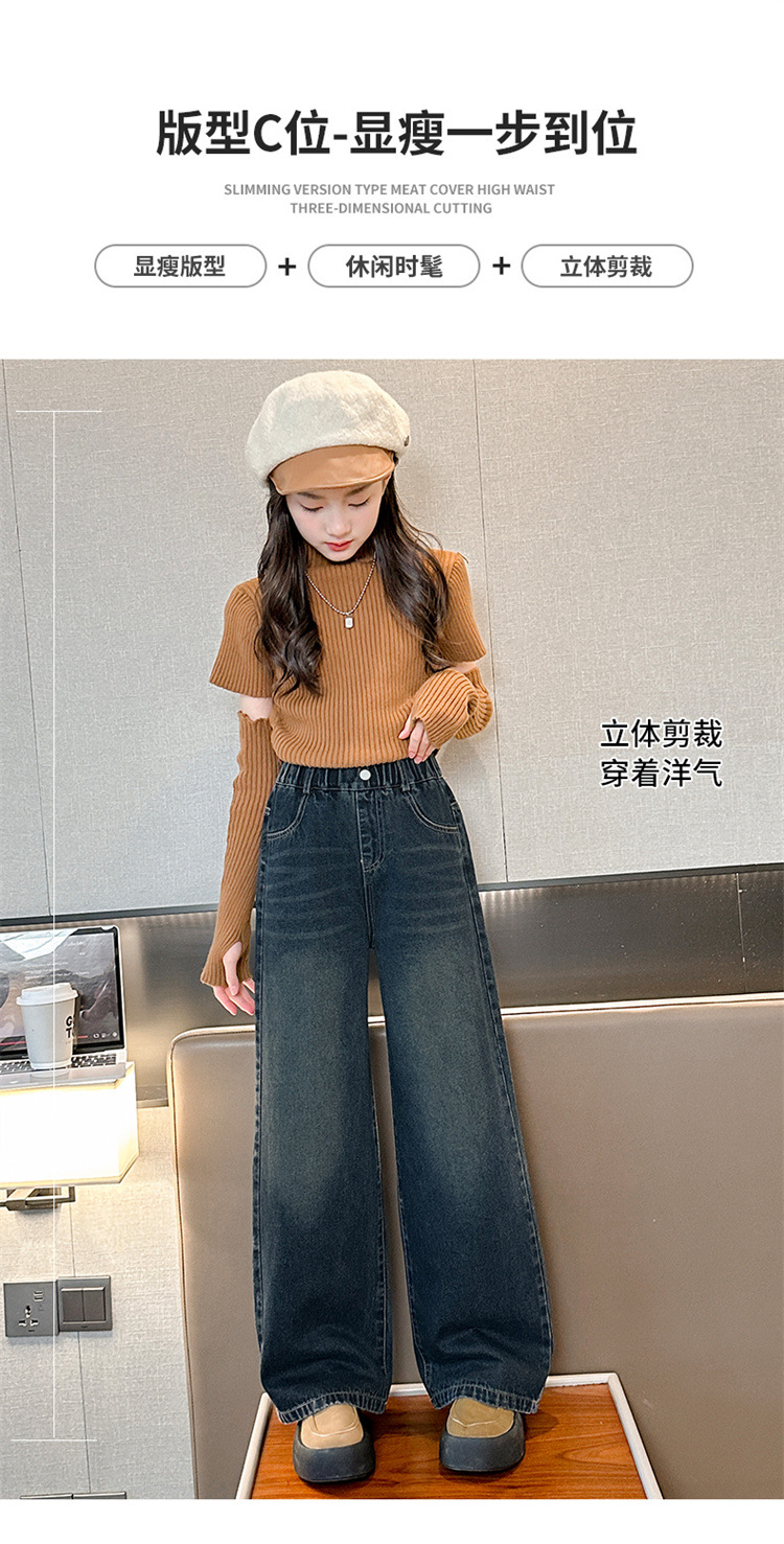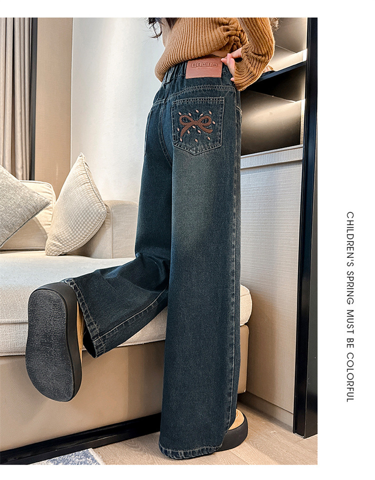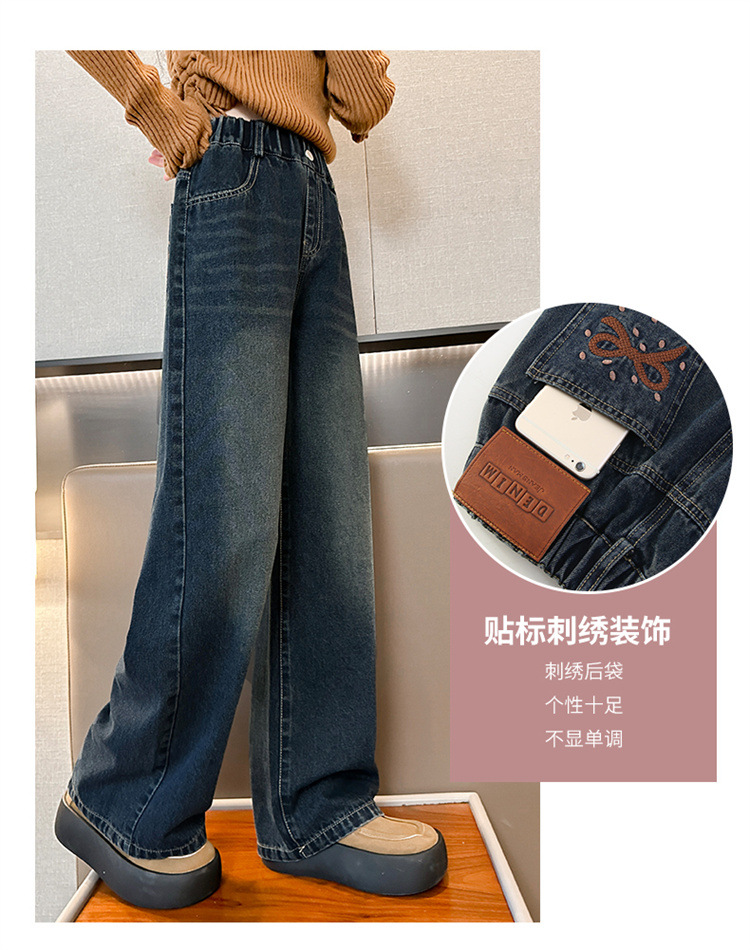 여아용 양털 바지 가을 겨울 2025 새로운 스타일 아동용 두꺼운 스트레이트 청바지 여아용 봄, 가을 와이드 팬츠스토어 가기