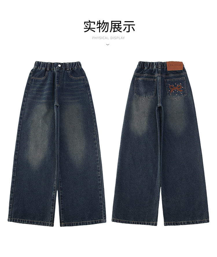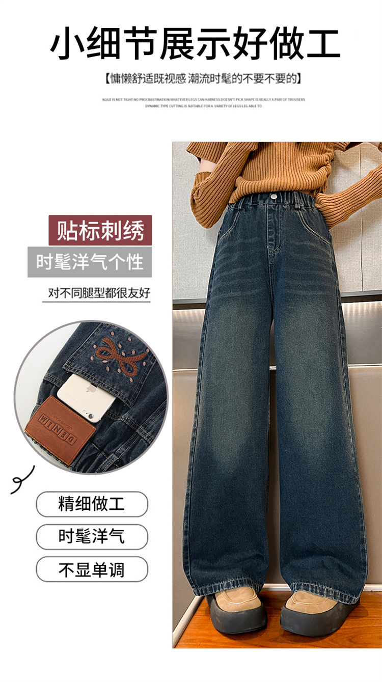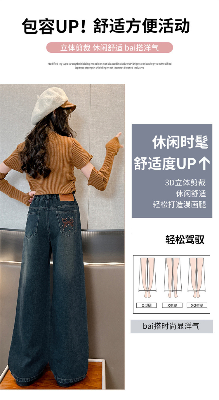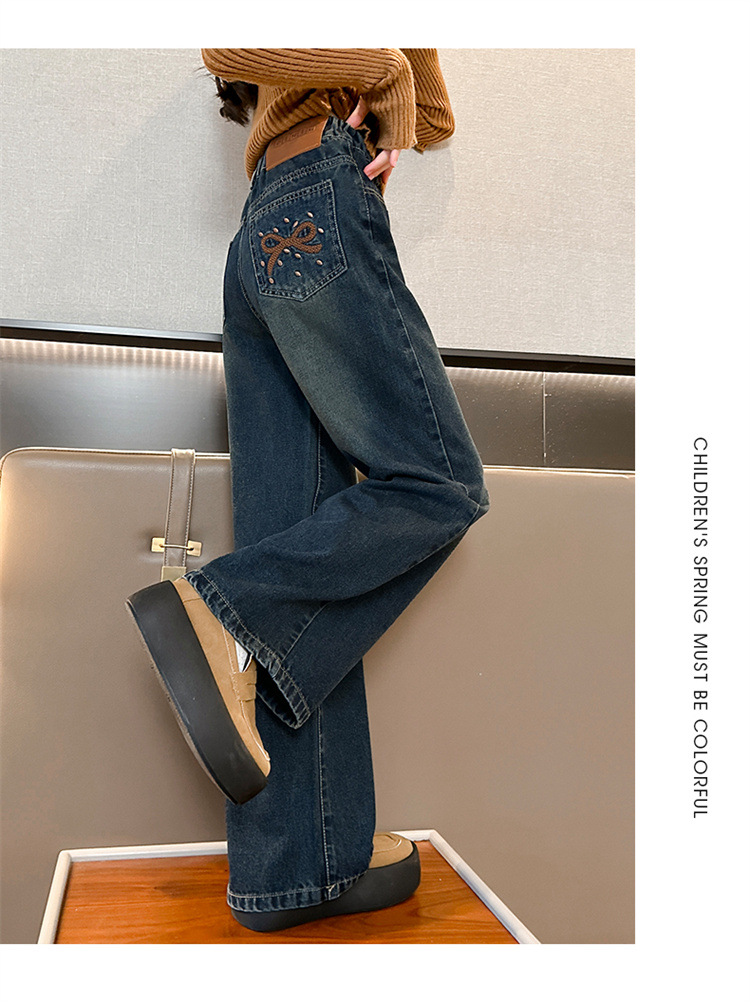 여아용 양털 바지 가을 겨울 2025 새로운 스타일 아동용 두꺼운 스트레이트 청바지 여아용 봄, 가을 와이드 팬츠스토어 가기