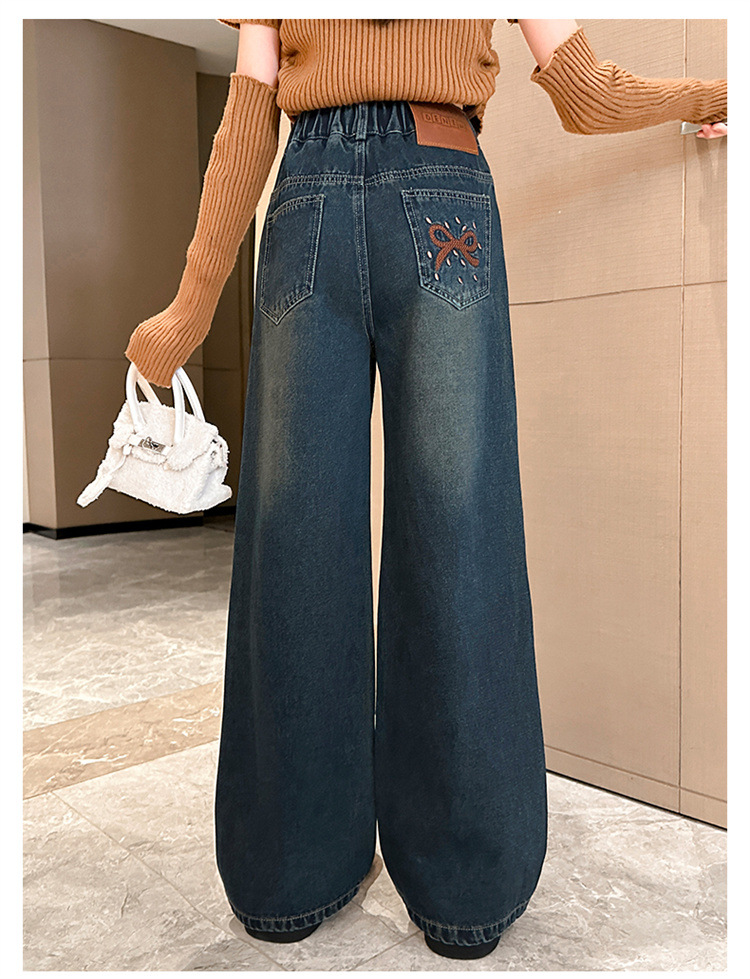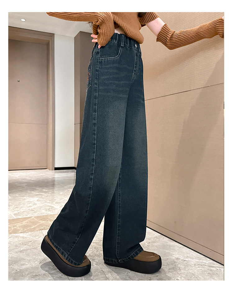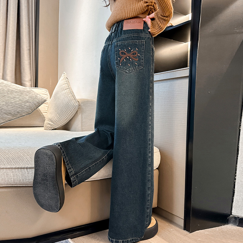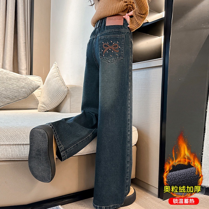 여아용 양털 바지 가을 겨울 2025 새로운 스타일 아동용 두꺼운 스트레이트 청바지 여아용 봄, 가을 와이드 팬츠