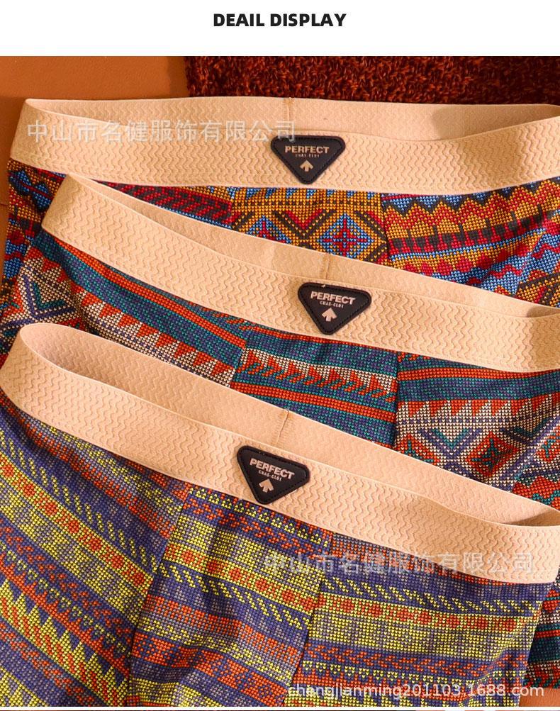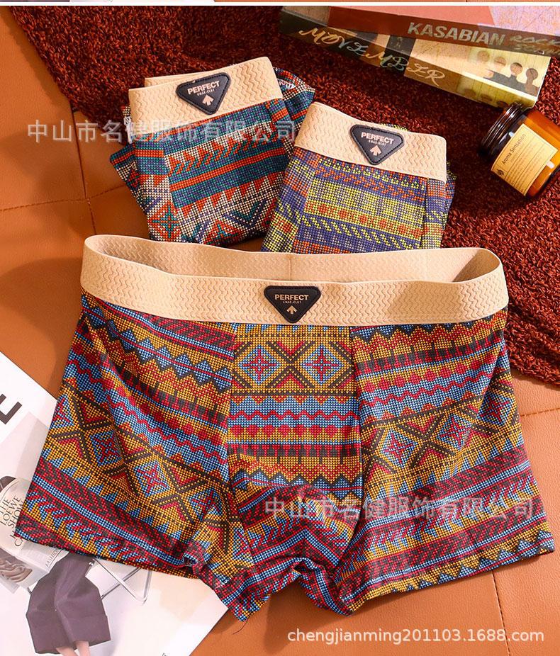 남성 속옷 순면 통기성 복서 팬티 복고풍 민족 스타일 편안한 유행 복서 팬티 프린트 반바지 여름