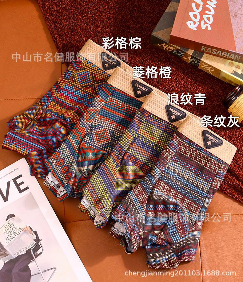 남성 속옷 순면 통기성 복서 팬티 복고풍 민족 스타일 편안한 유행 복서 팬티 프린트 반바지 여름스토어 가기