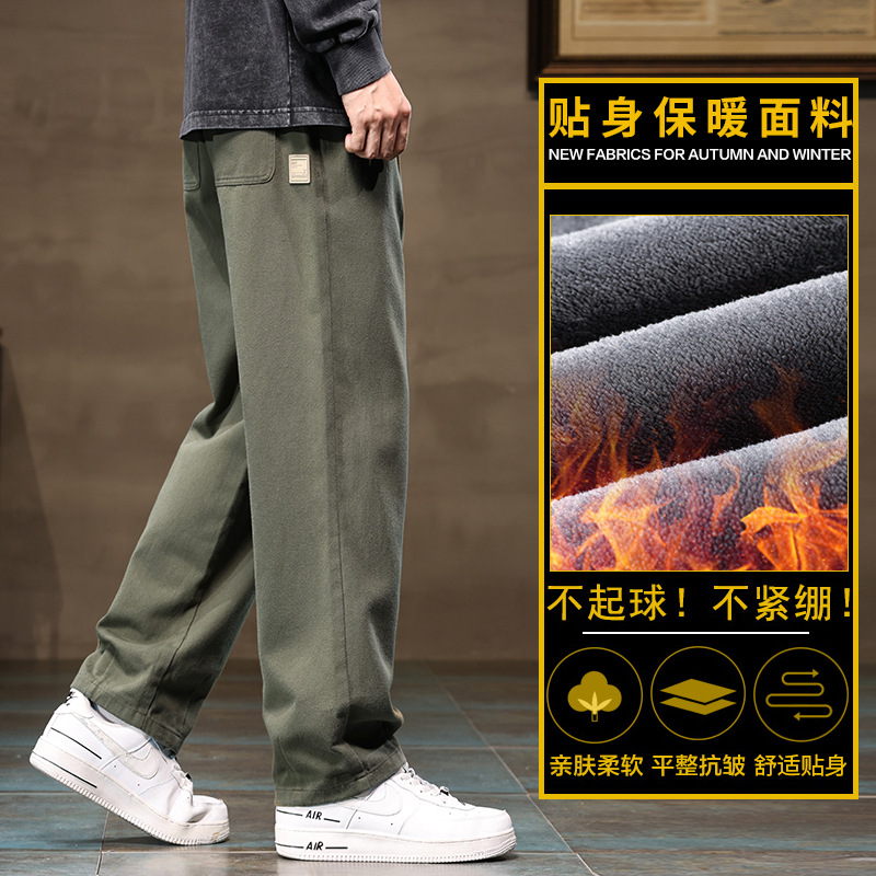 남성용 작업복 바지 2025 신상 루즈핏 스트레이트 팬츠 남성용 가을 두꺼운 모델 가을 겨울 기모 순면 캐주얼 긴바지스토어 가기