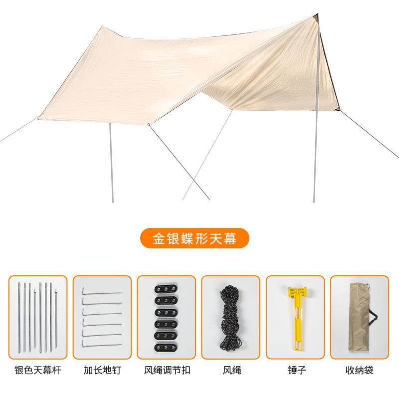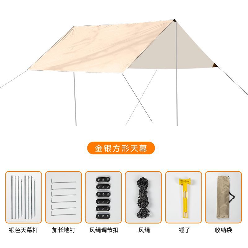 야외 캐노피 텐트, 방수 커튼, 캠핑 장비, 휴대용 은도금 자외선 차단제 캠핑 피크닉 천막 풀 세트