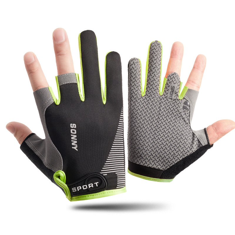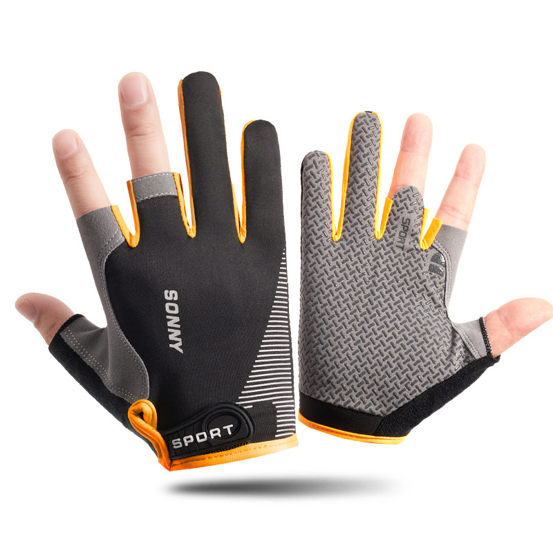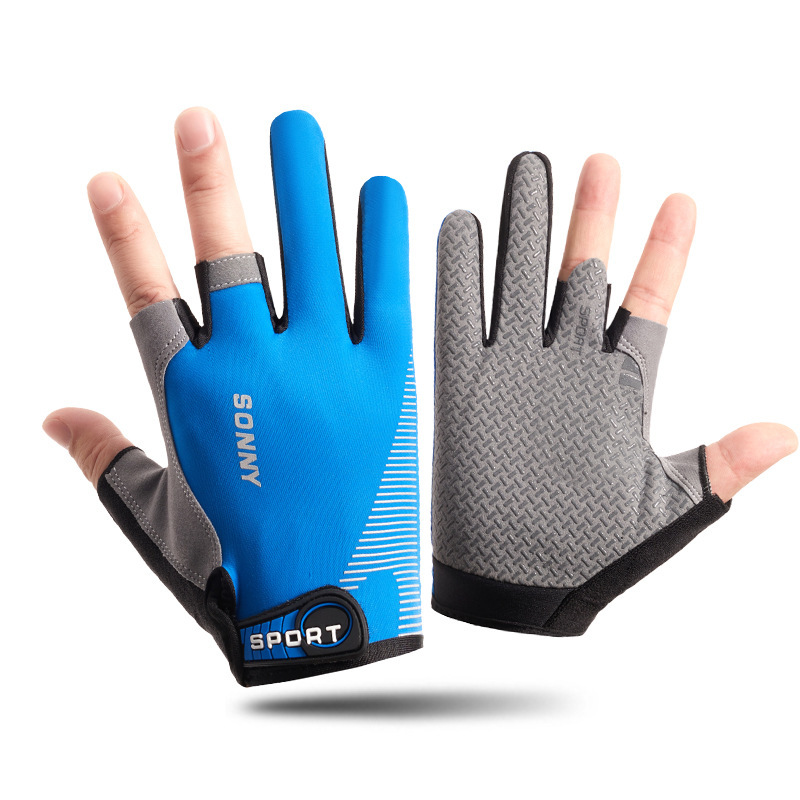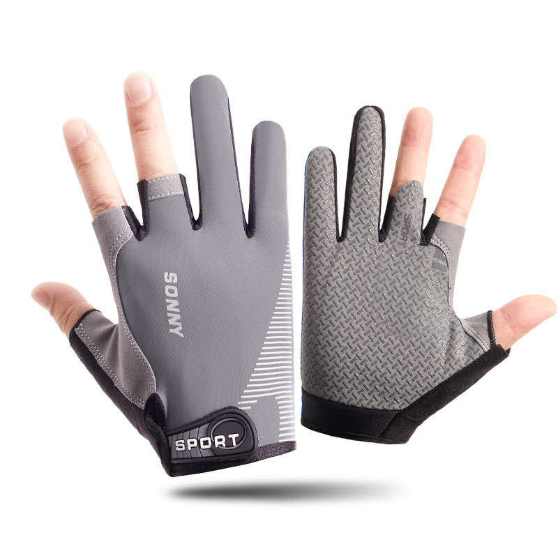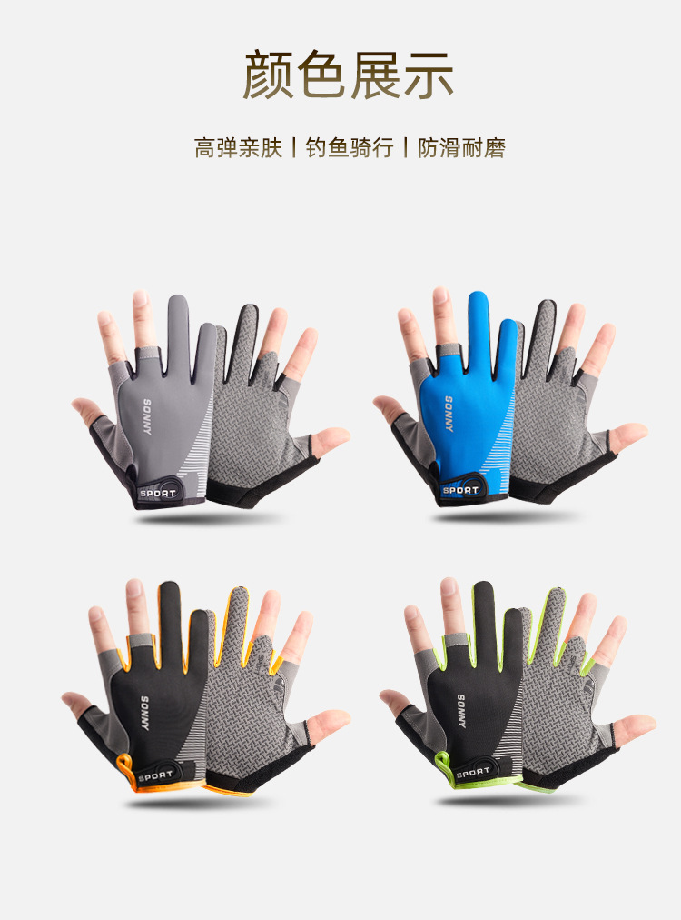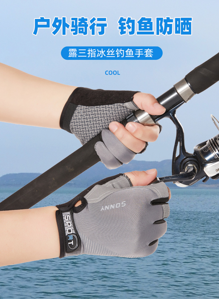 남성용 낚시 장갑 여름 얼음 실크 자외선 차단제 미끄럼 방지 통기성 얇은 두 손가락 노출 사이클링 운전 루어 테이크아웃 반 손가락