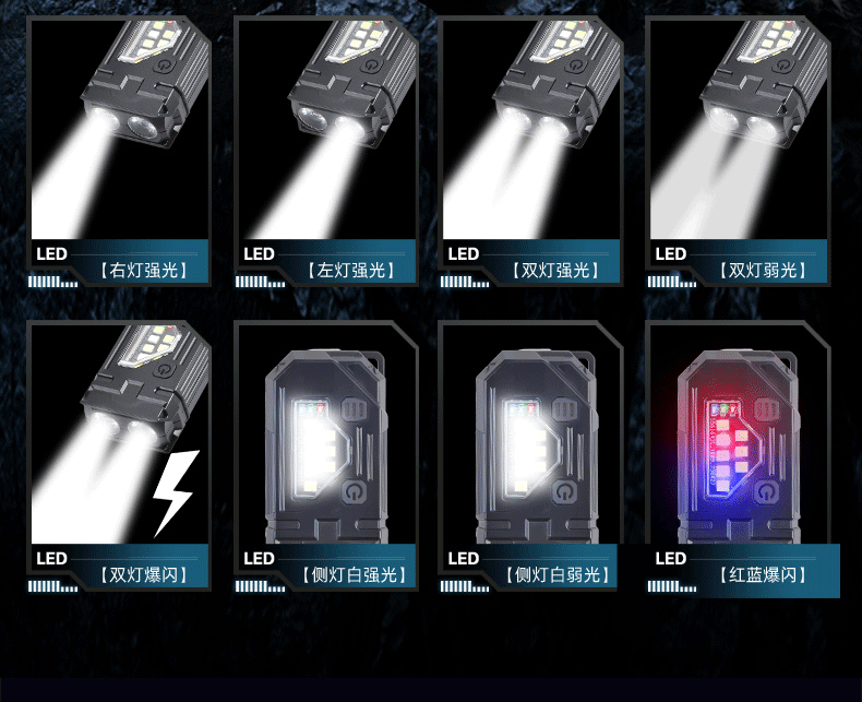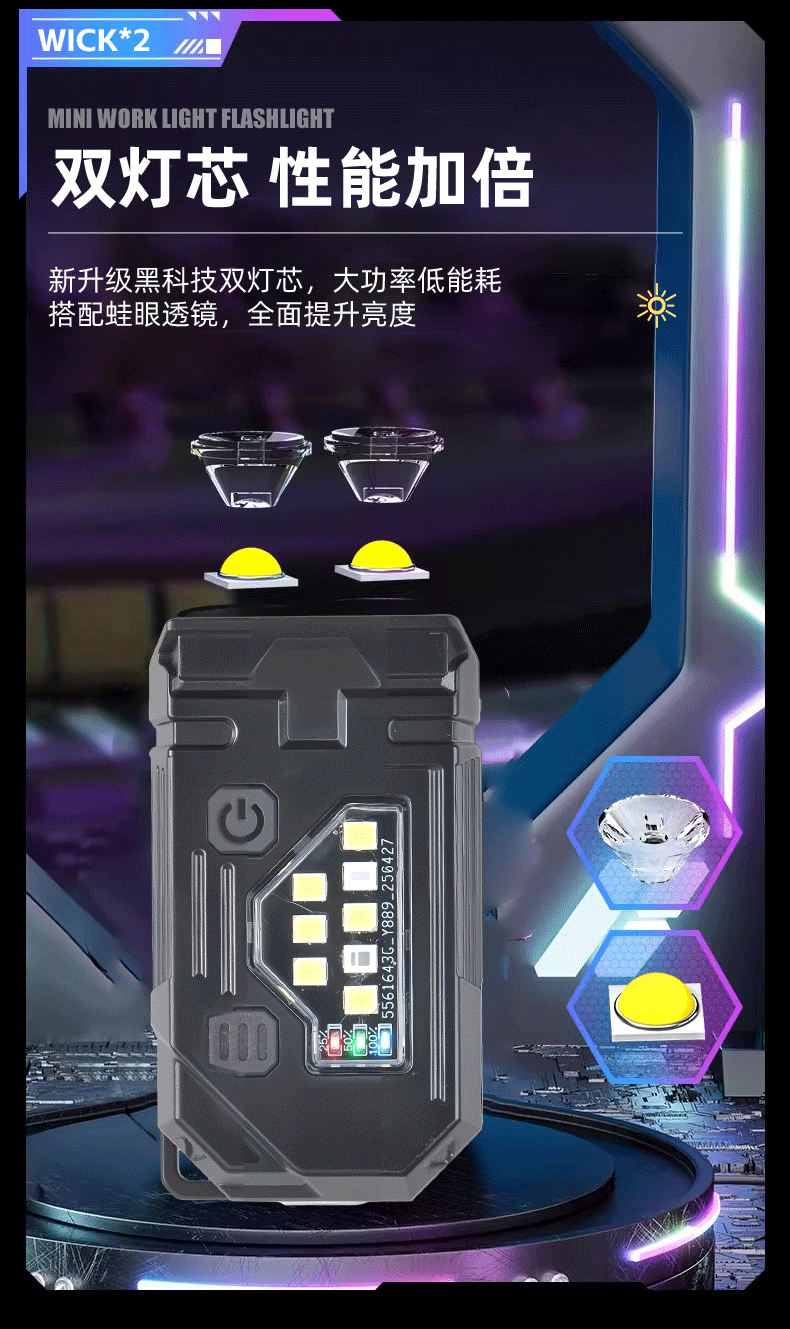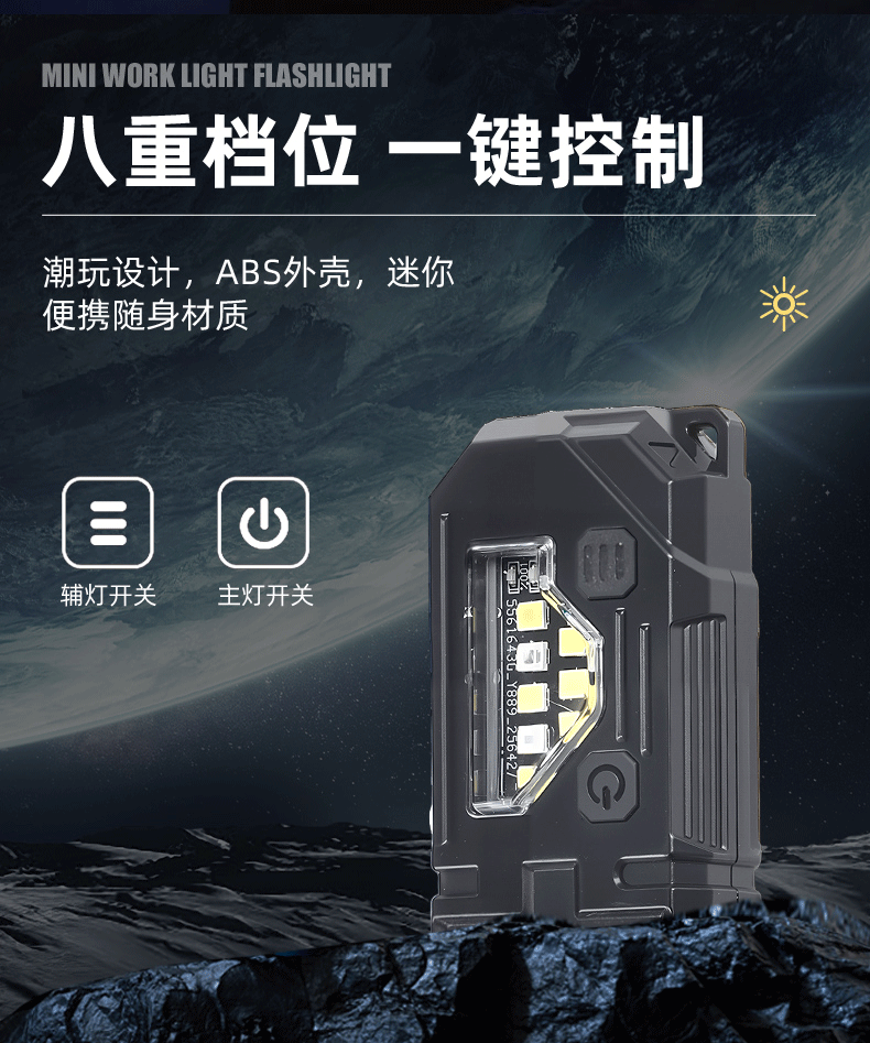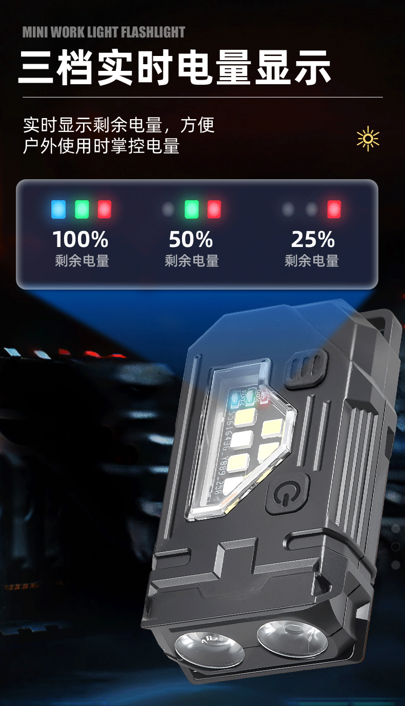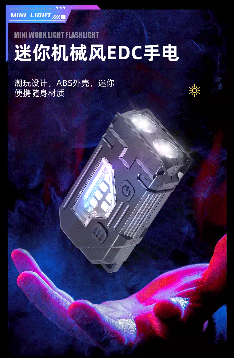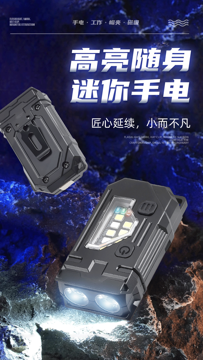 강한 빛 미니 손전등 야외 편리한 키 체인 빛 듀얼 광원 긴 수명 LED 수리 작업 빛