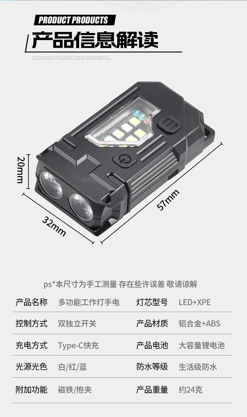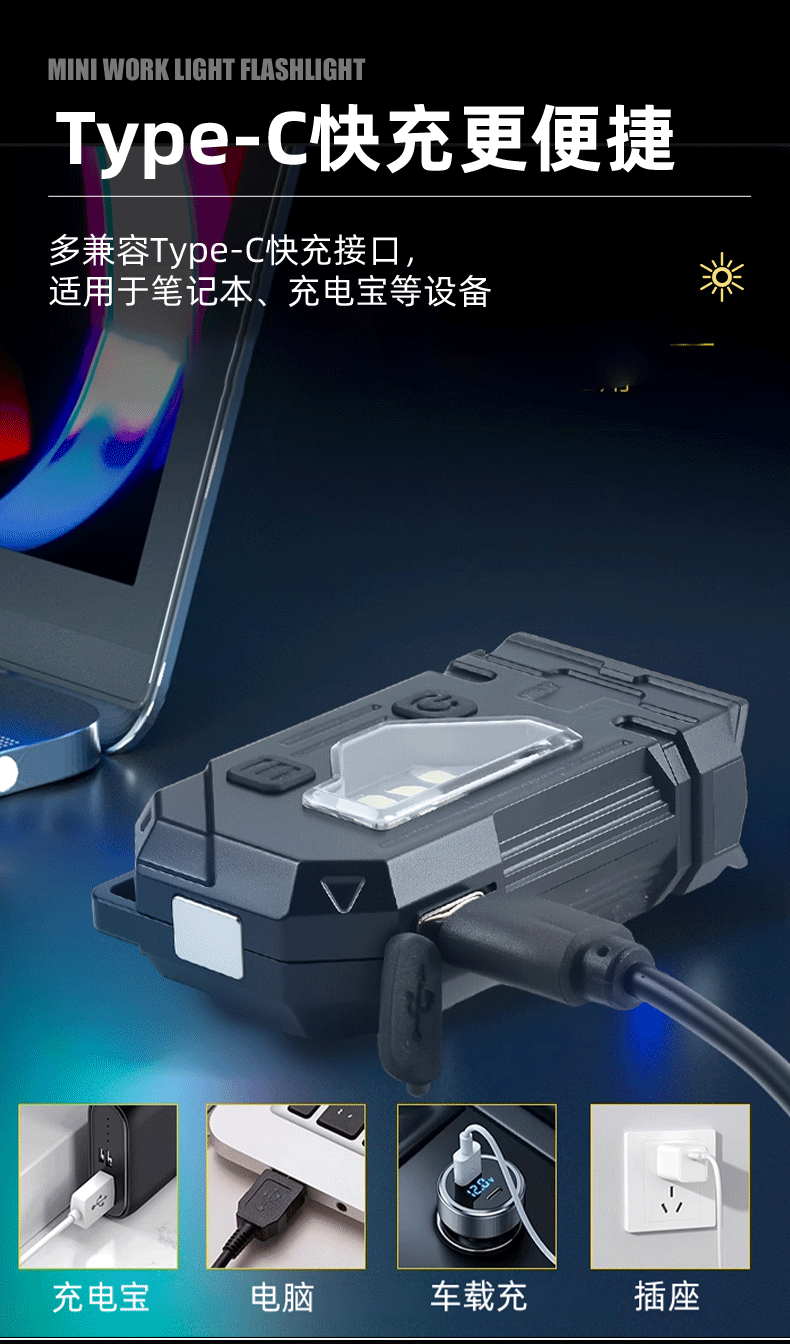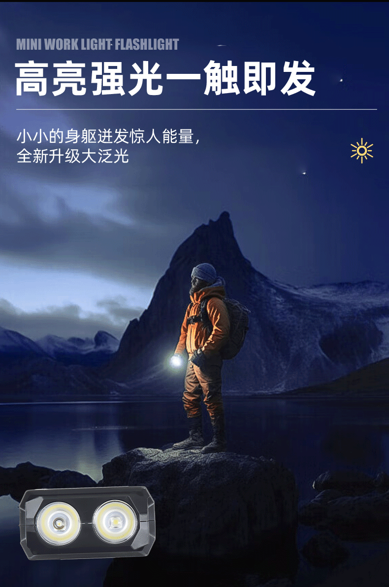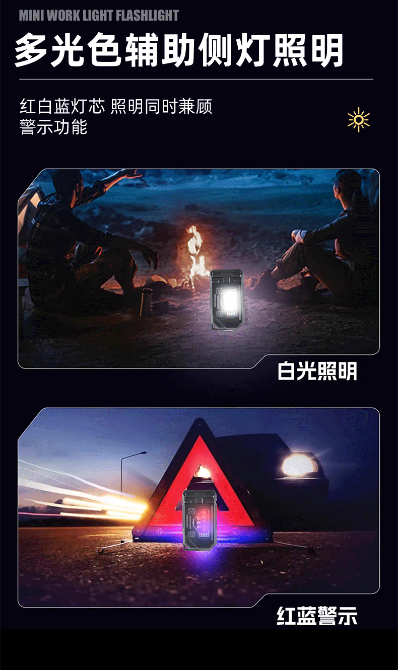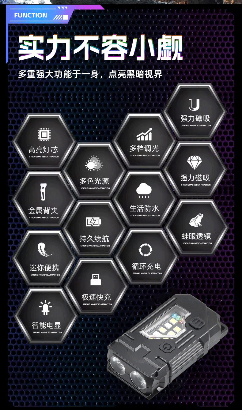 강한 빛 미니 손전등 야외 편리한 키 체인 빛 듀얼 광원 긴 수명 LED 수리 작업 빛