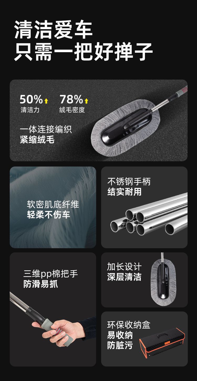 부드러운 강모 먼지 제거 먼지 떨이 텔레스코픽 자동차 왁스 걸레 자동차 용품 도구 청소 세차 걸레