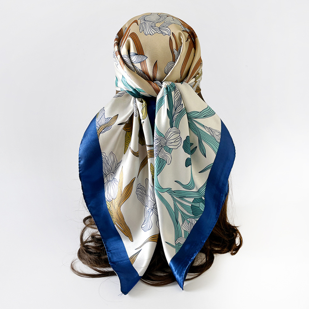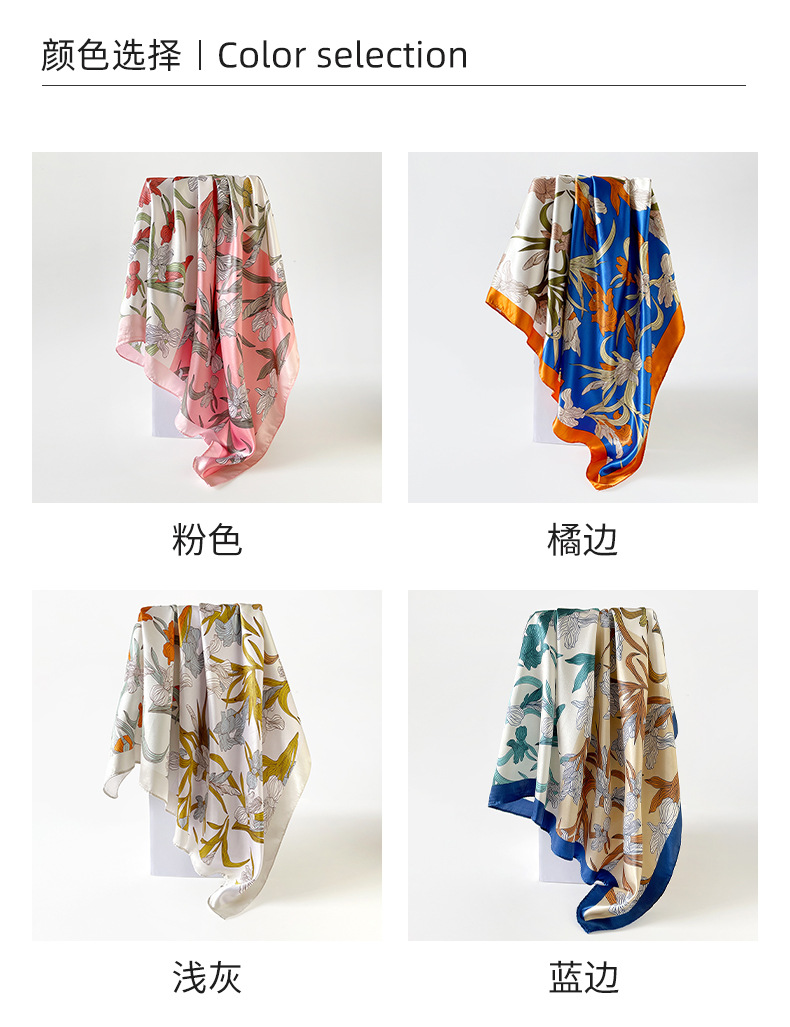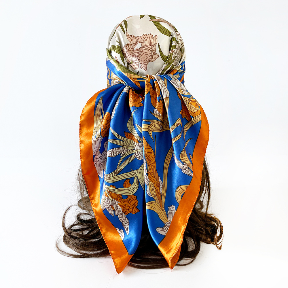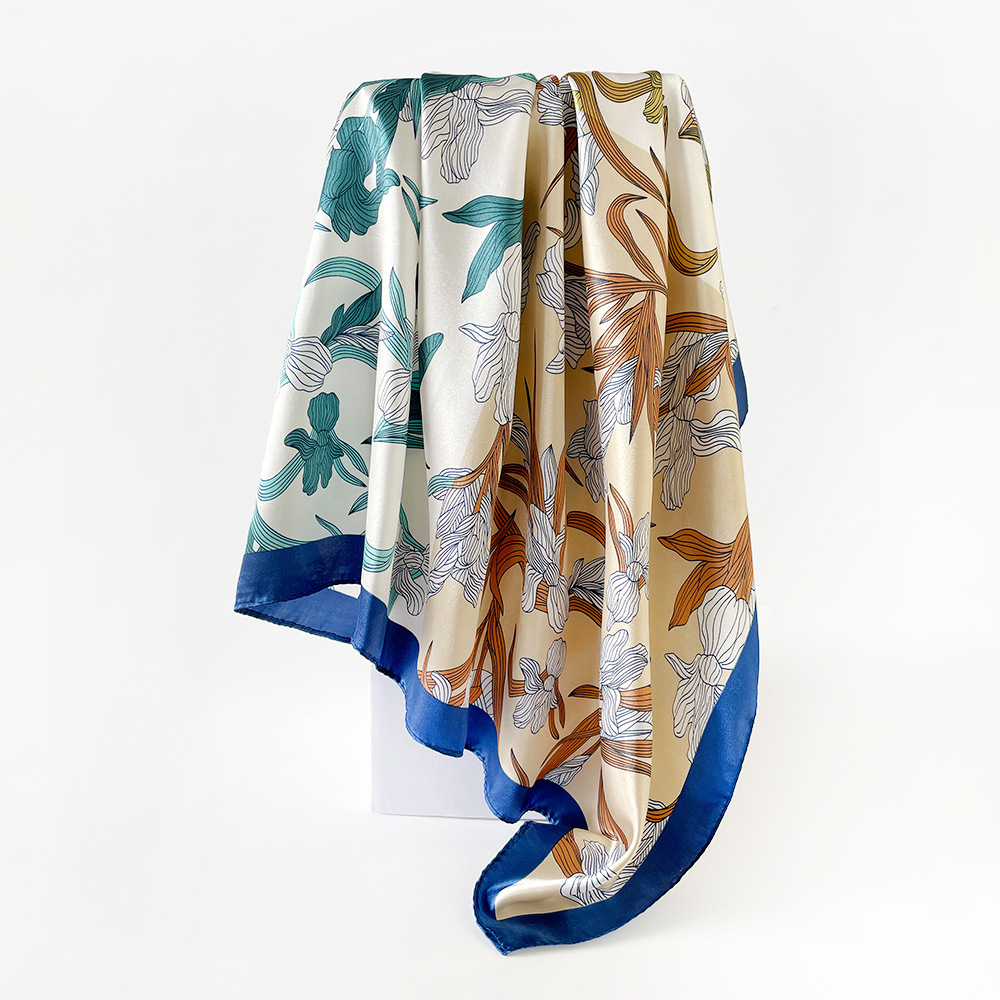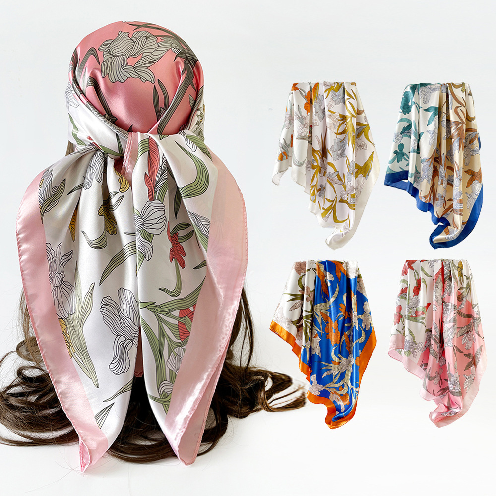인쇄 된 터번 90cm 실크 스카프 도매 클래식 꽃 대형 사각형 스카프 유럽과 미국 여성의 국경 간 새틴 목도리