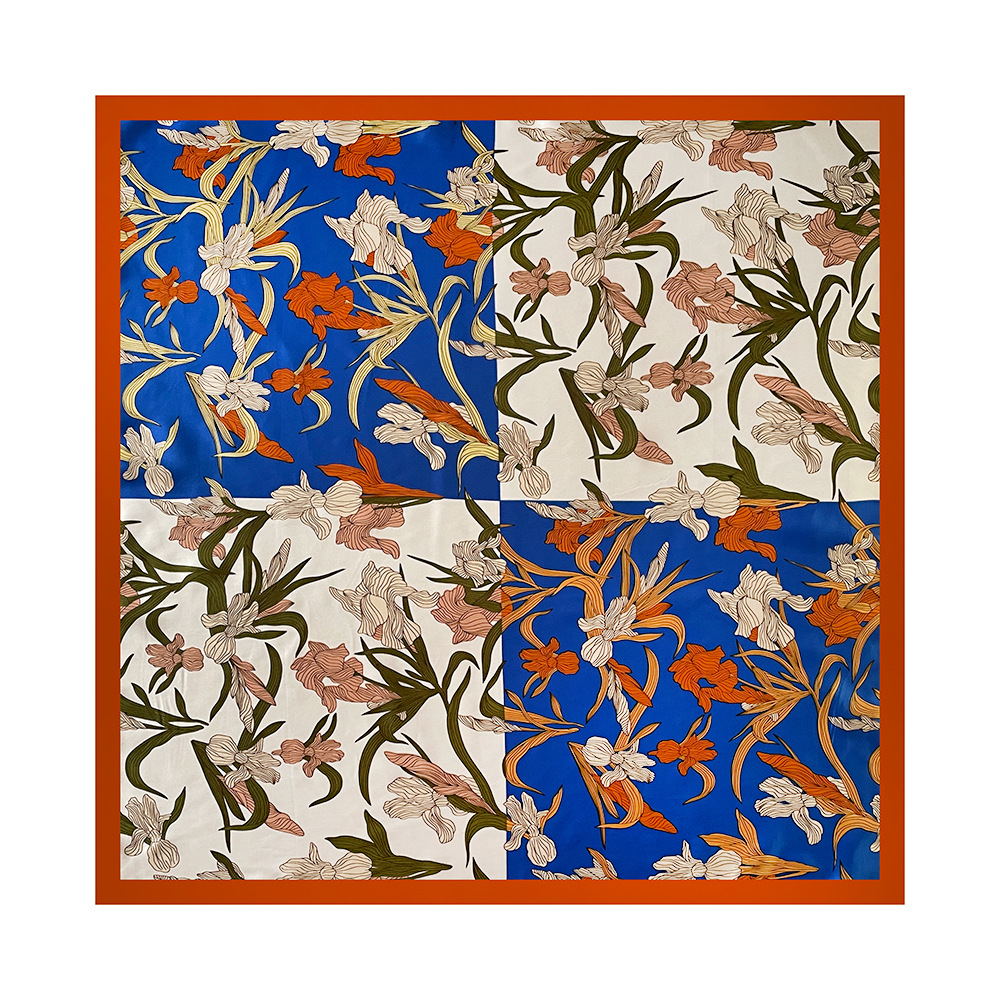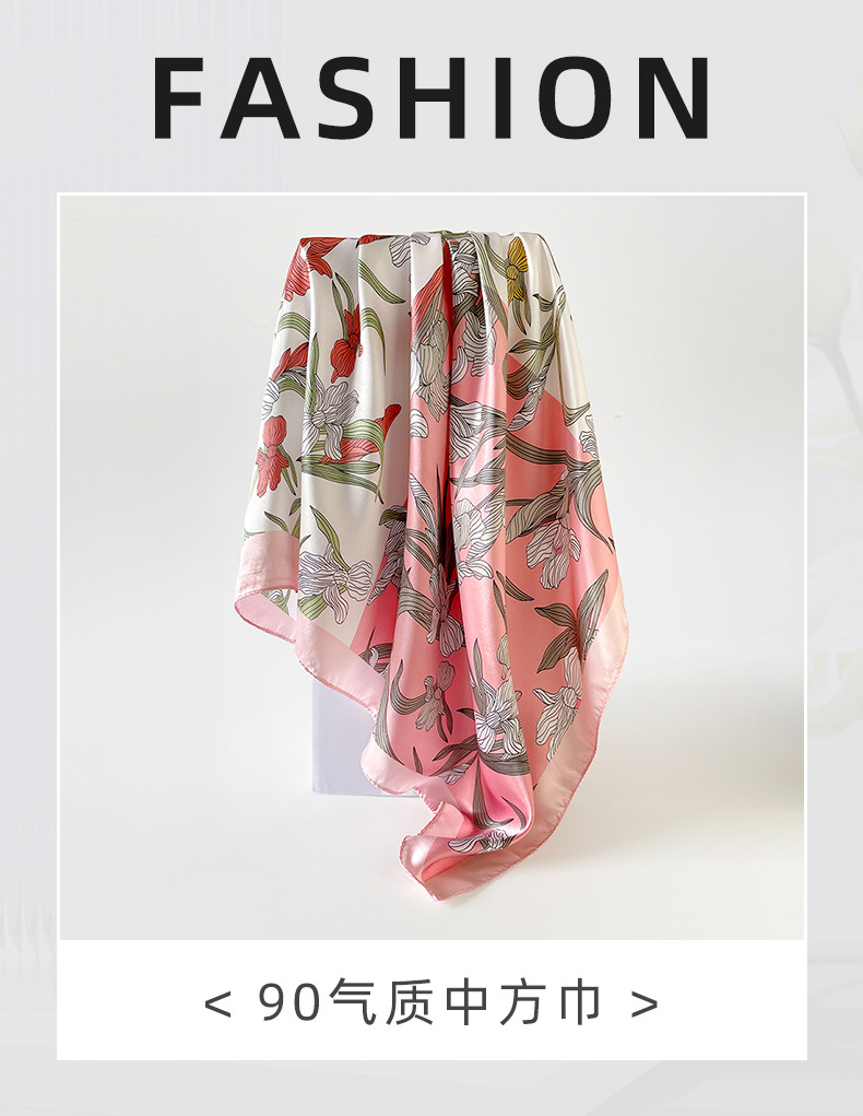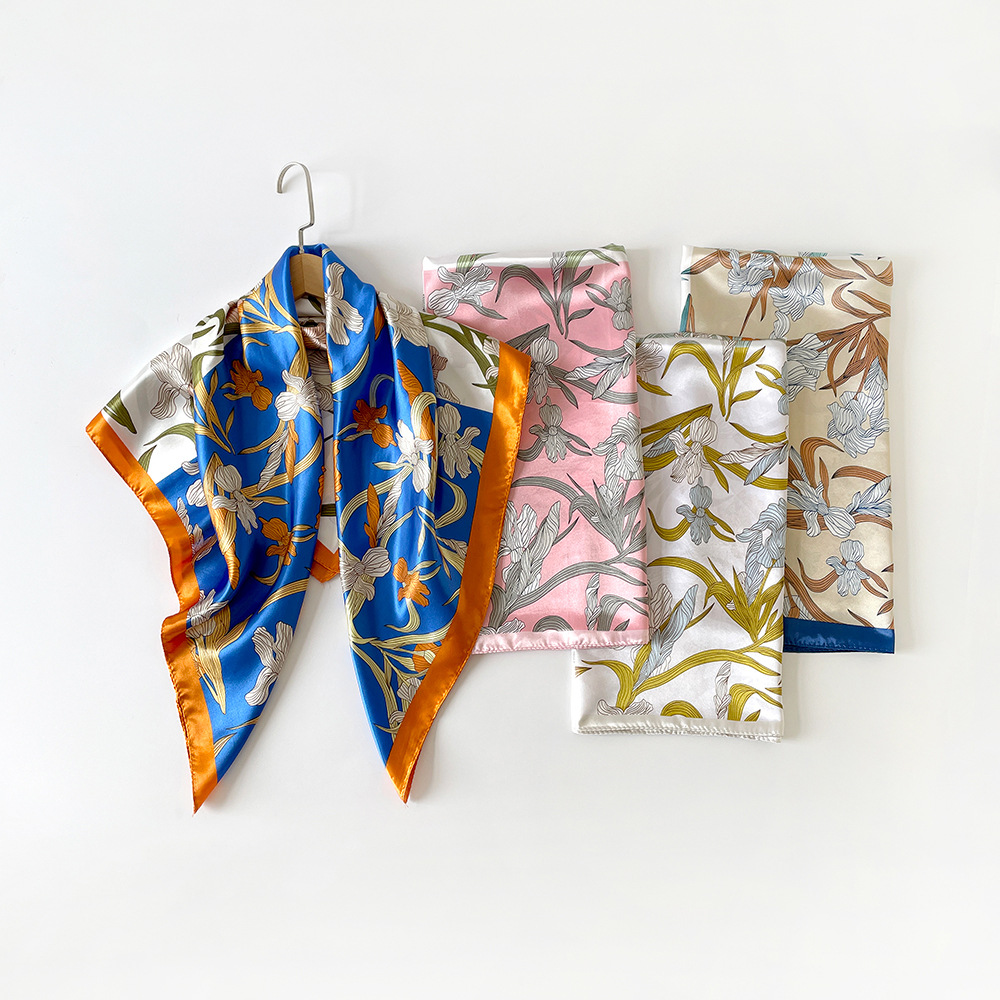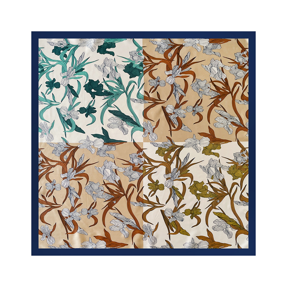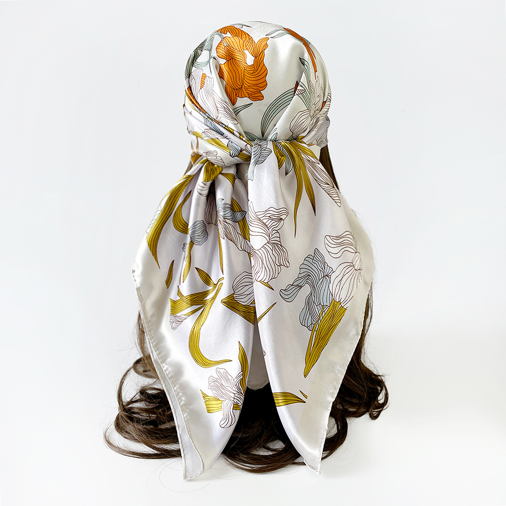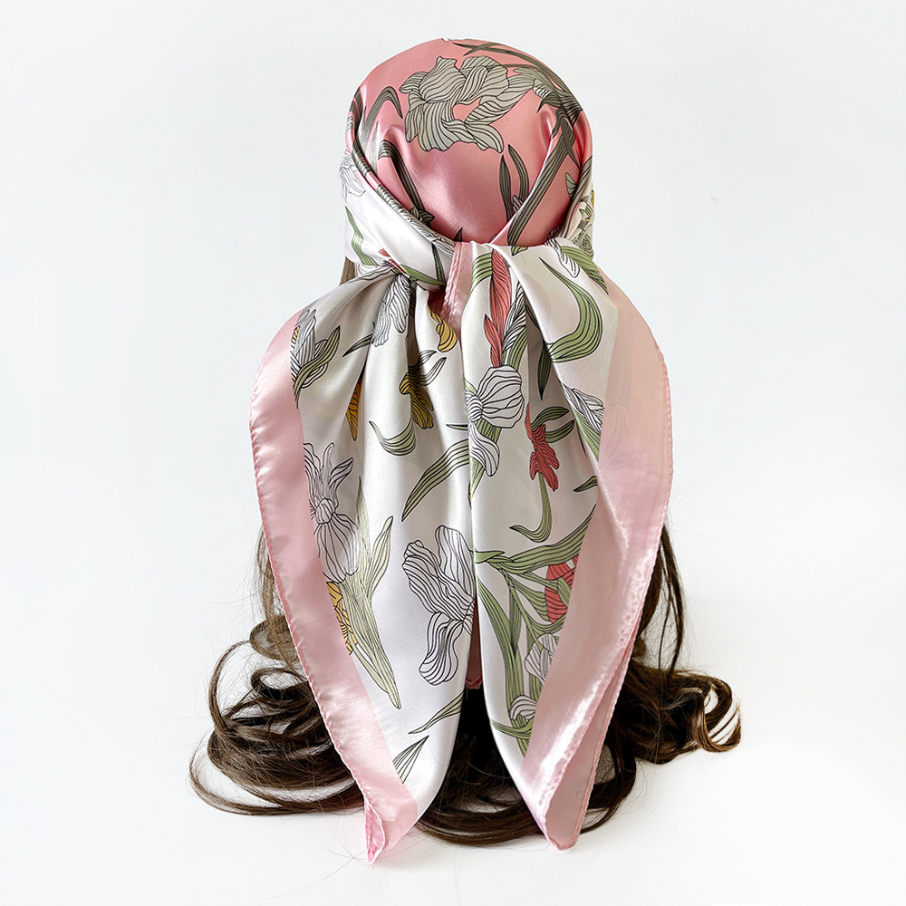 인쇄 된 터번 90cm 실크 스카프 도매 클래식 꽃 대형 사각형 스카프 유럽과 미국 여성의 국경 간 새틴 목도리