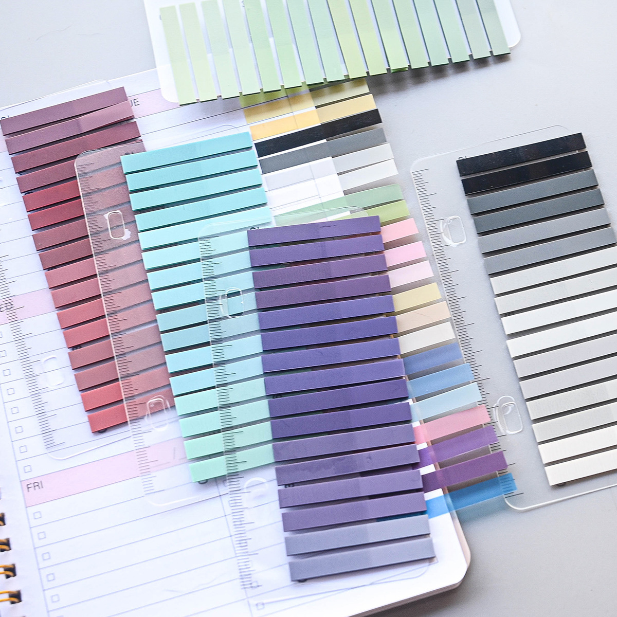 대외 무역 국경 간 그라데이션 색상 애완 동물 스티커 메모 투명 색인 스티커 메모를 위한 얇은 스트립 접착 메모 스티커