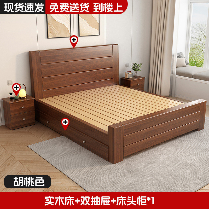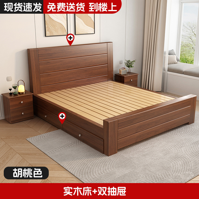 새로운 중국 스타일 1.8m 더블 침대 단단한 나무 침대 1.5m 가정용 침대 현대 간단한 경제적 인 1.0m 싱글 침대 프레임스토어 가기