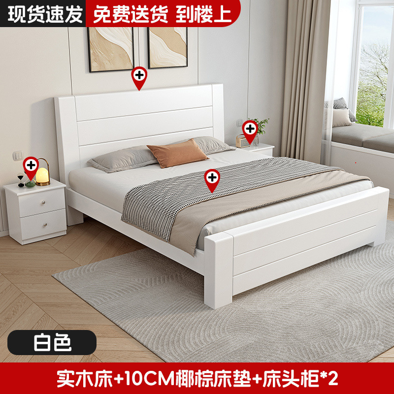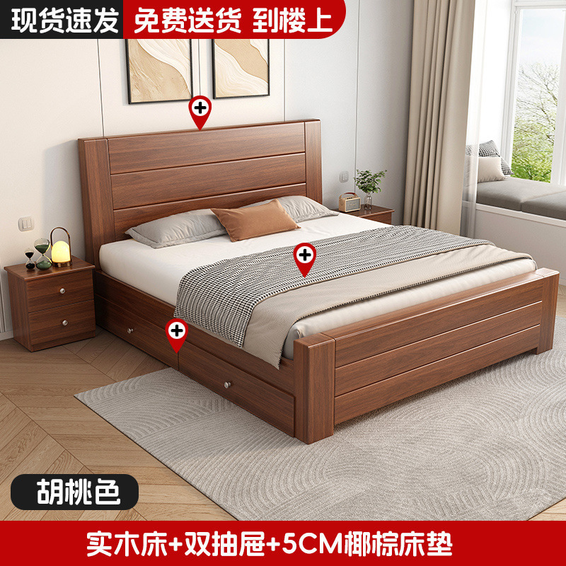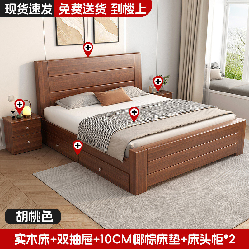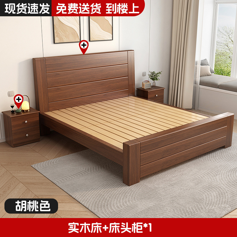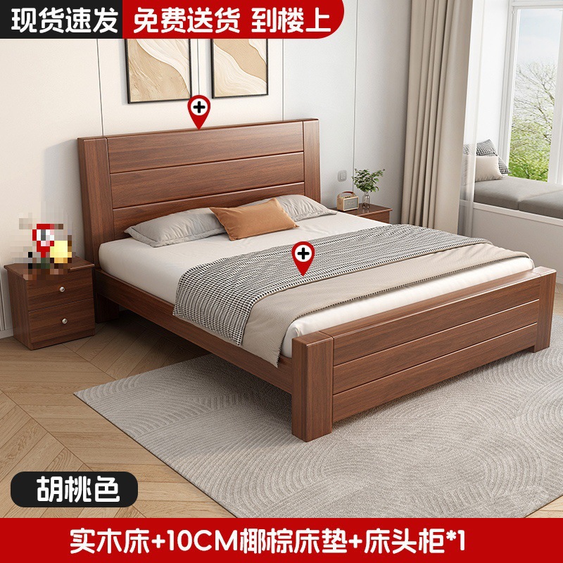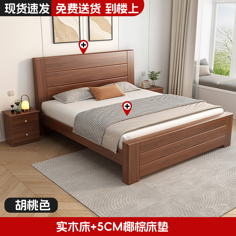 새로운 중국 스타일 1.8m 더블 침대 단단한 나무 침대 1.5m 가정용 침대 현대 간단한 경제적 인 1.0m 싱글 침대 프레임