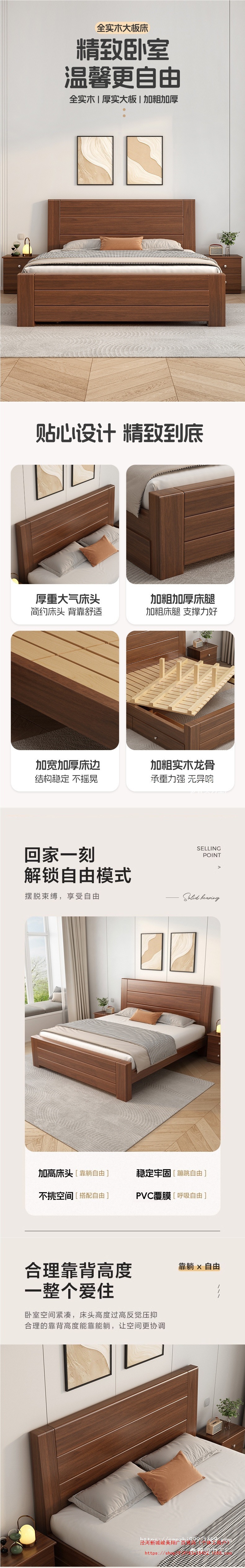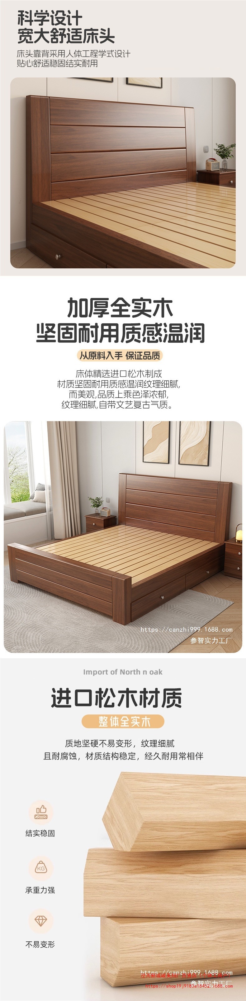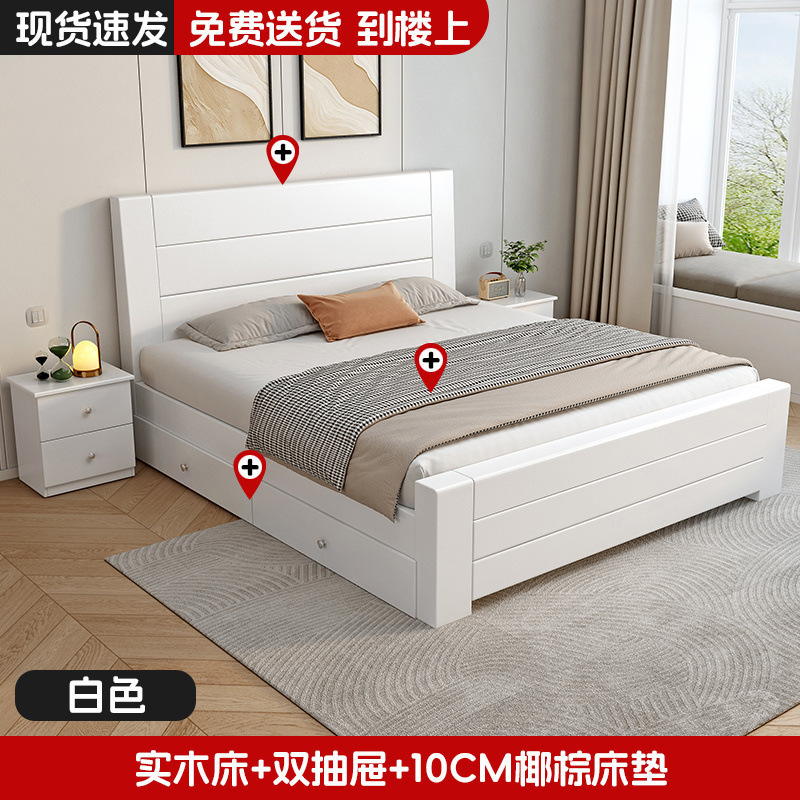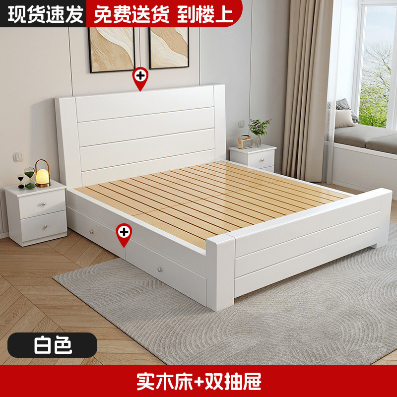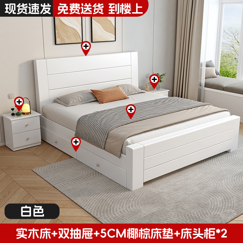 새로운 중국 스타일 1.8m 더블 침대 단단한 나무 침대 1.5m 가정용 침대 현대 간단한 경제적 인 1.0m 싱글 침대 프레임