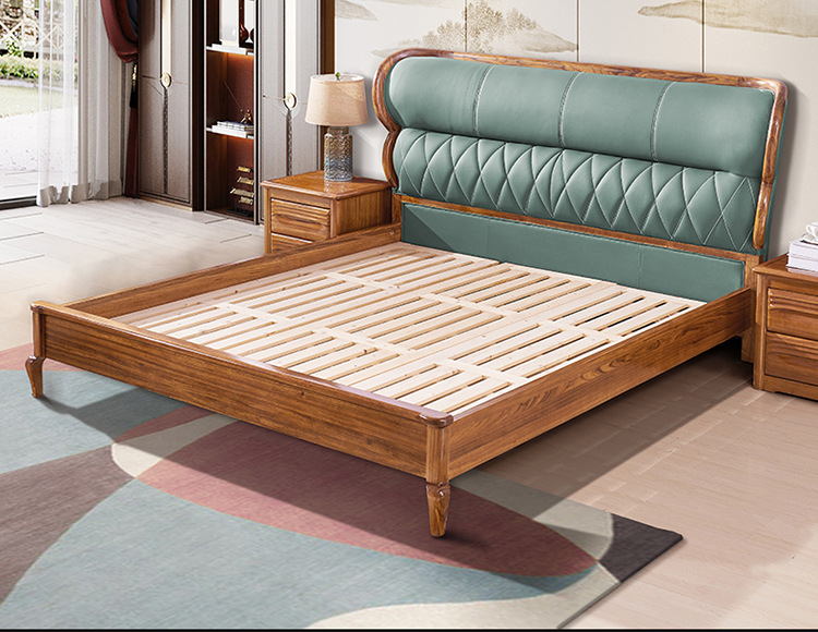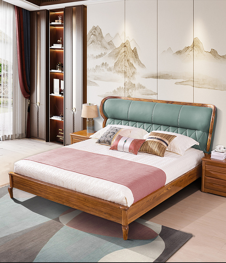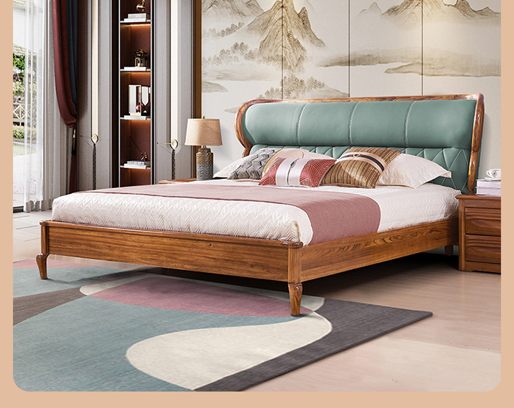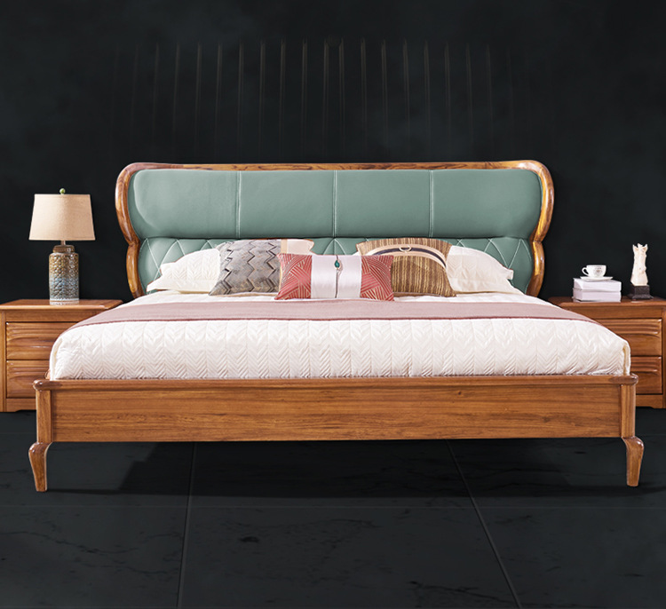 Olosu 검은 골드 나무 가죽 단단한 나무 침대 더블 침대 라이트 럭셔리 대형 침대 웨딩 침대 가죽 아트 침대 홈 럭셔리 가죽 침대스토어 가기