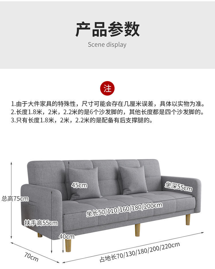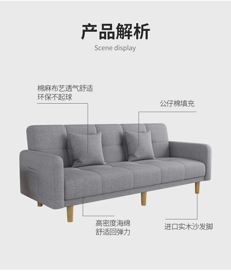 테크놀로지 패브릭 소파 베드 일체형 이중 목적 심플 모던 소형 거실 임대 사무실 접이식 소파