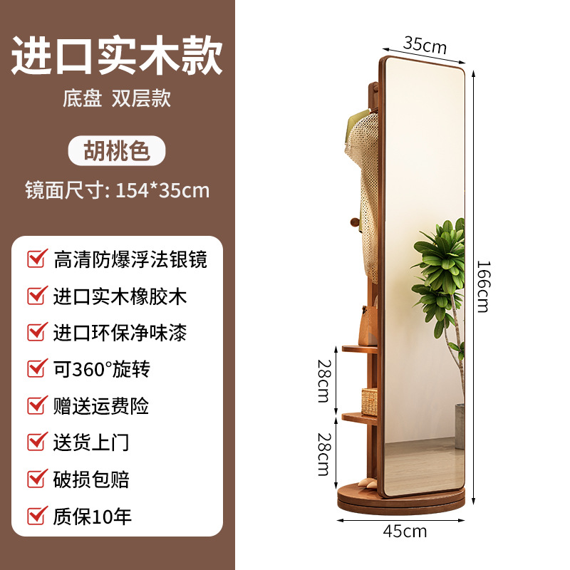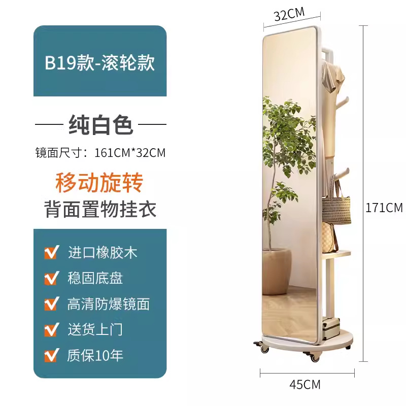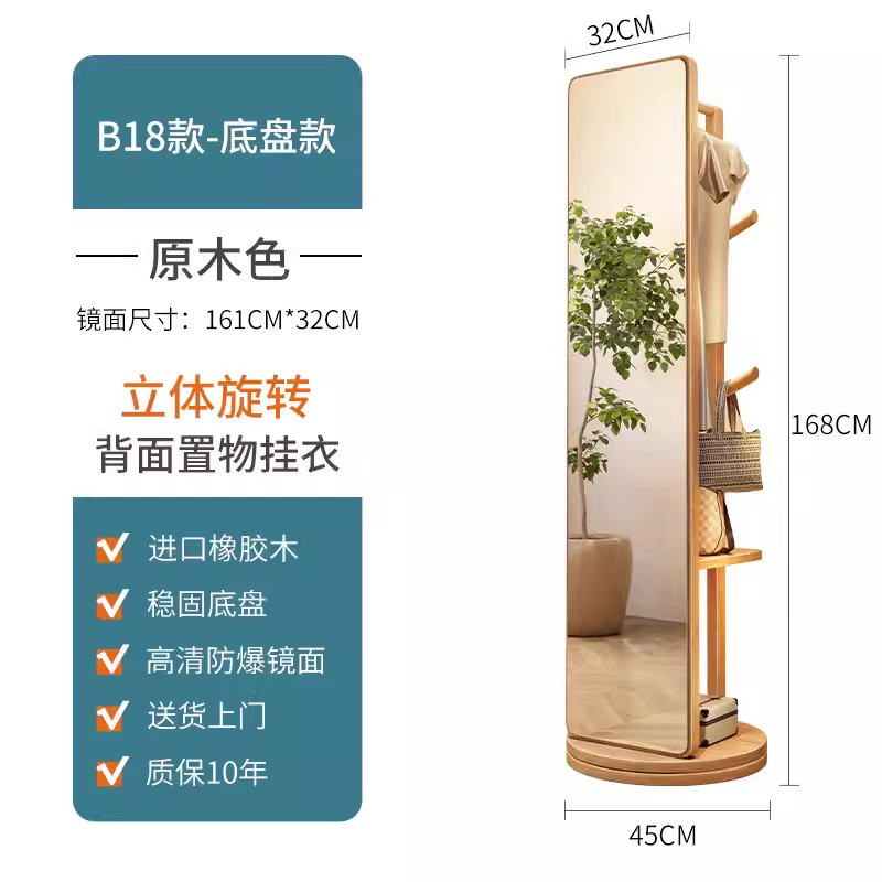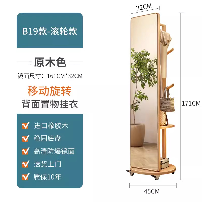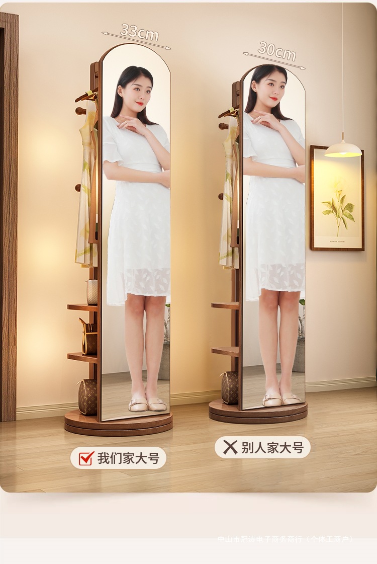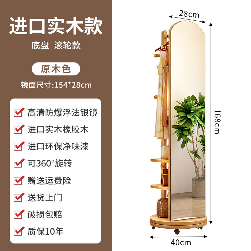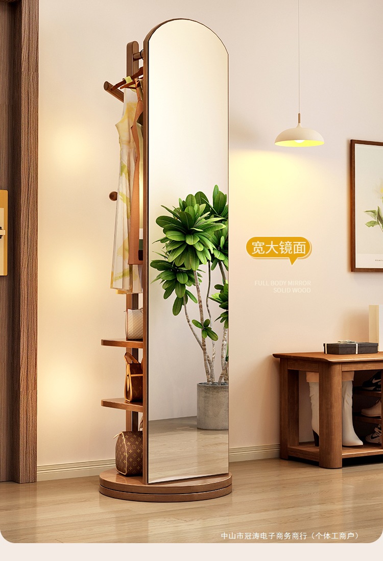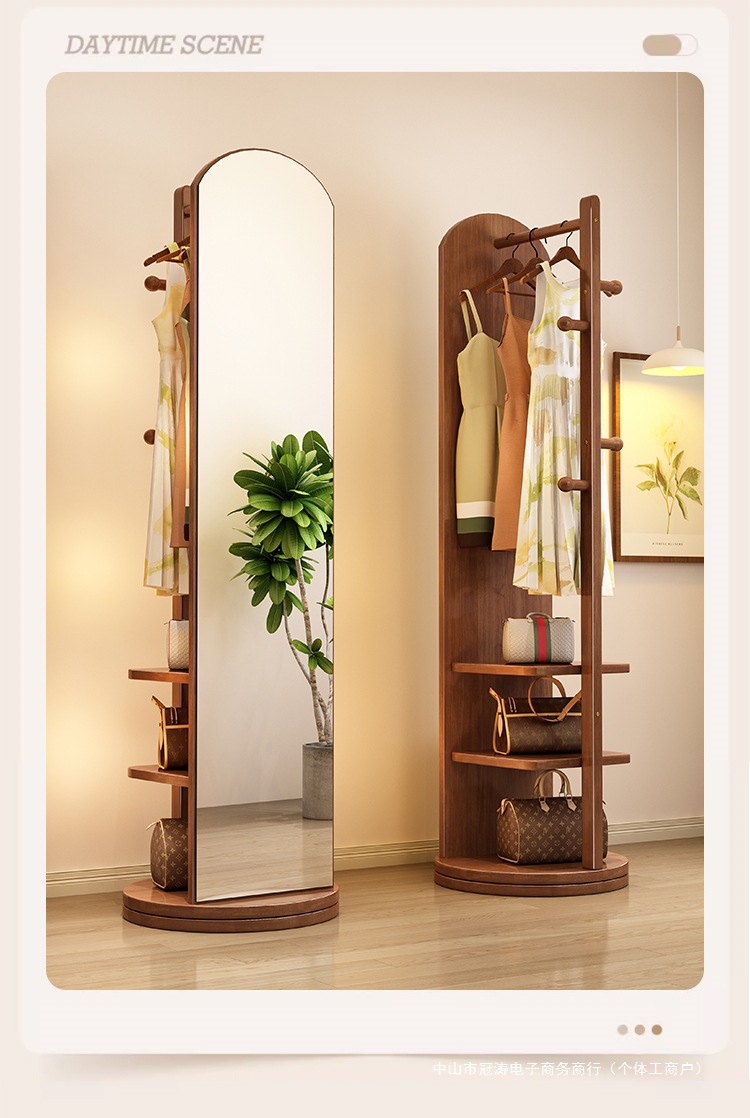 단단한 나무 옷걸이 침실 바닥 옷걸이 거울 통합 거실 홈 이동식 다기능 스토리지 랙
