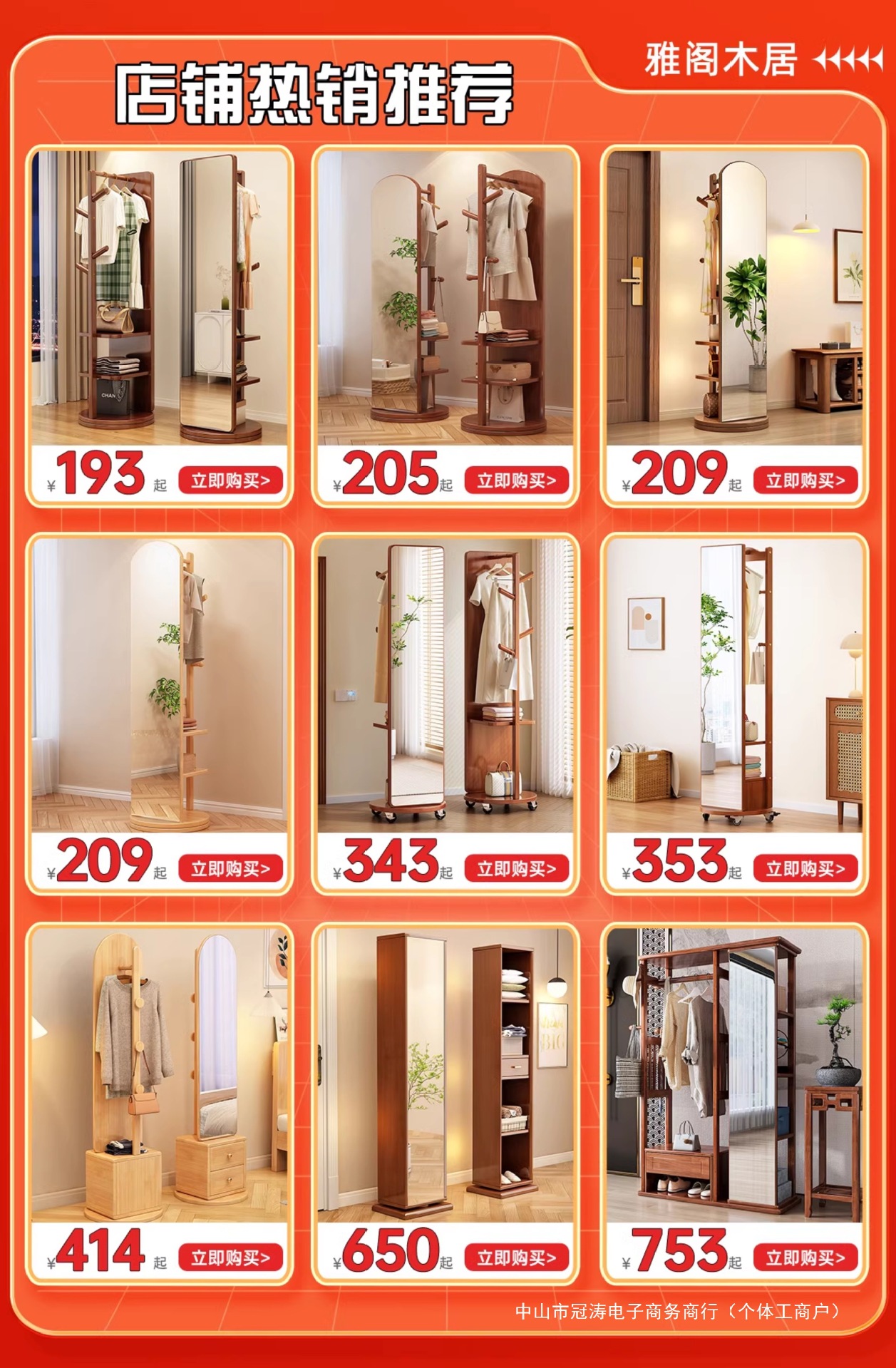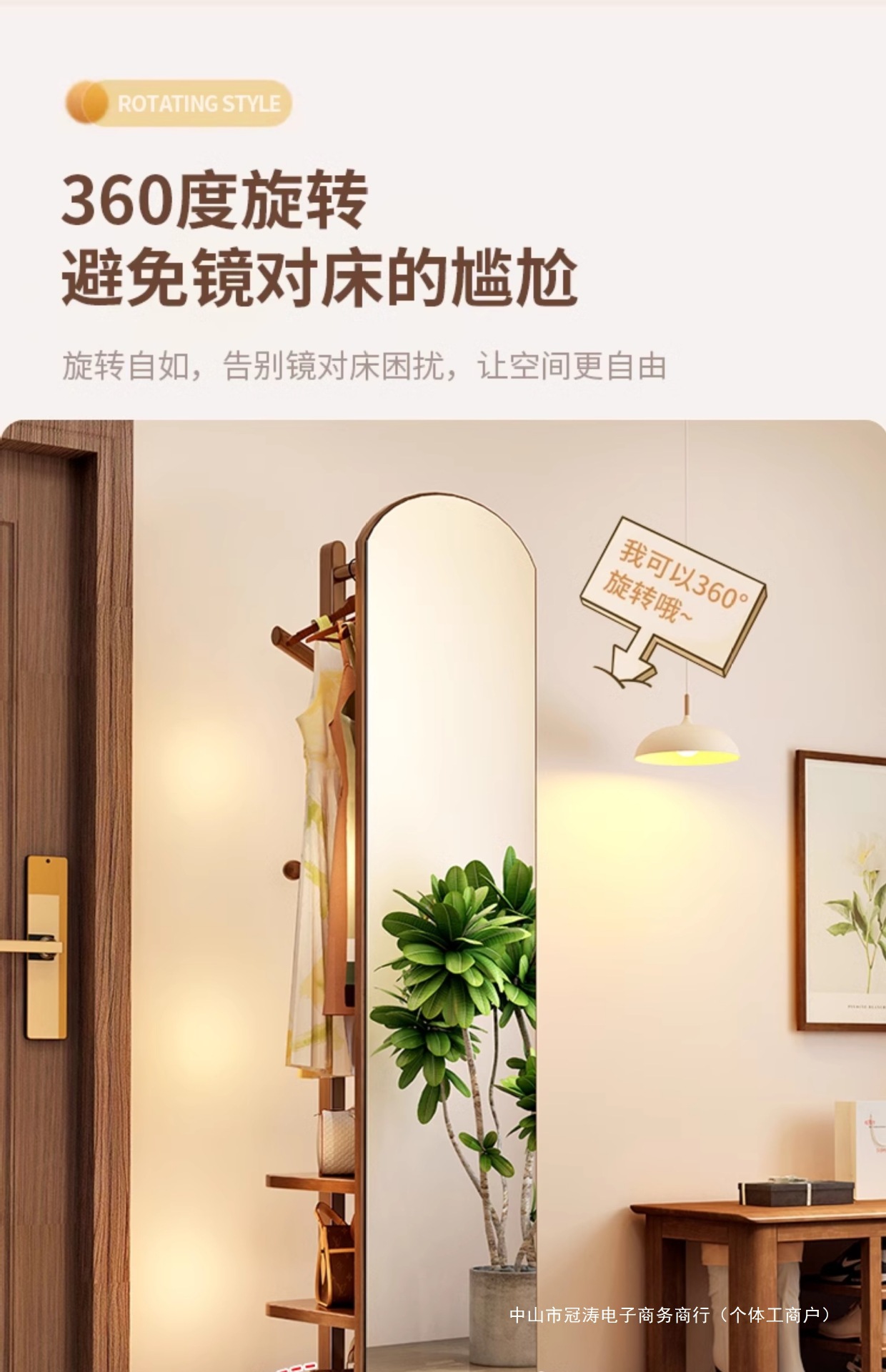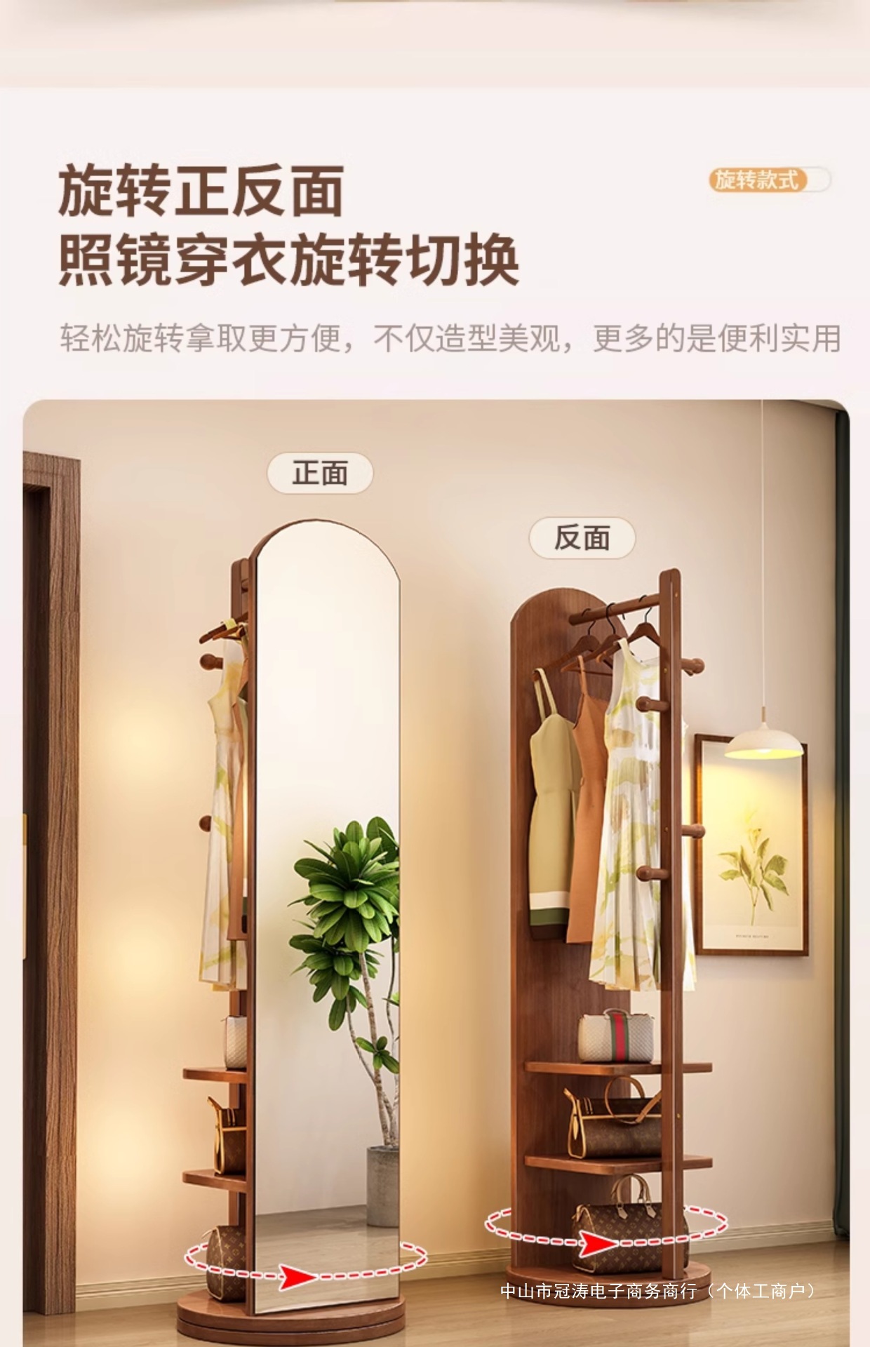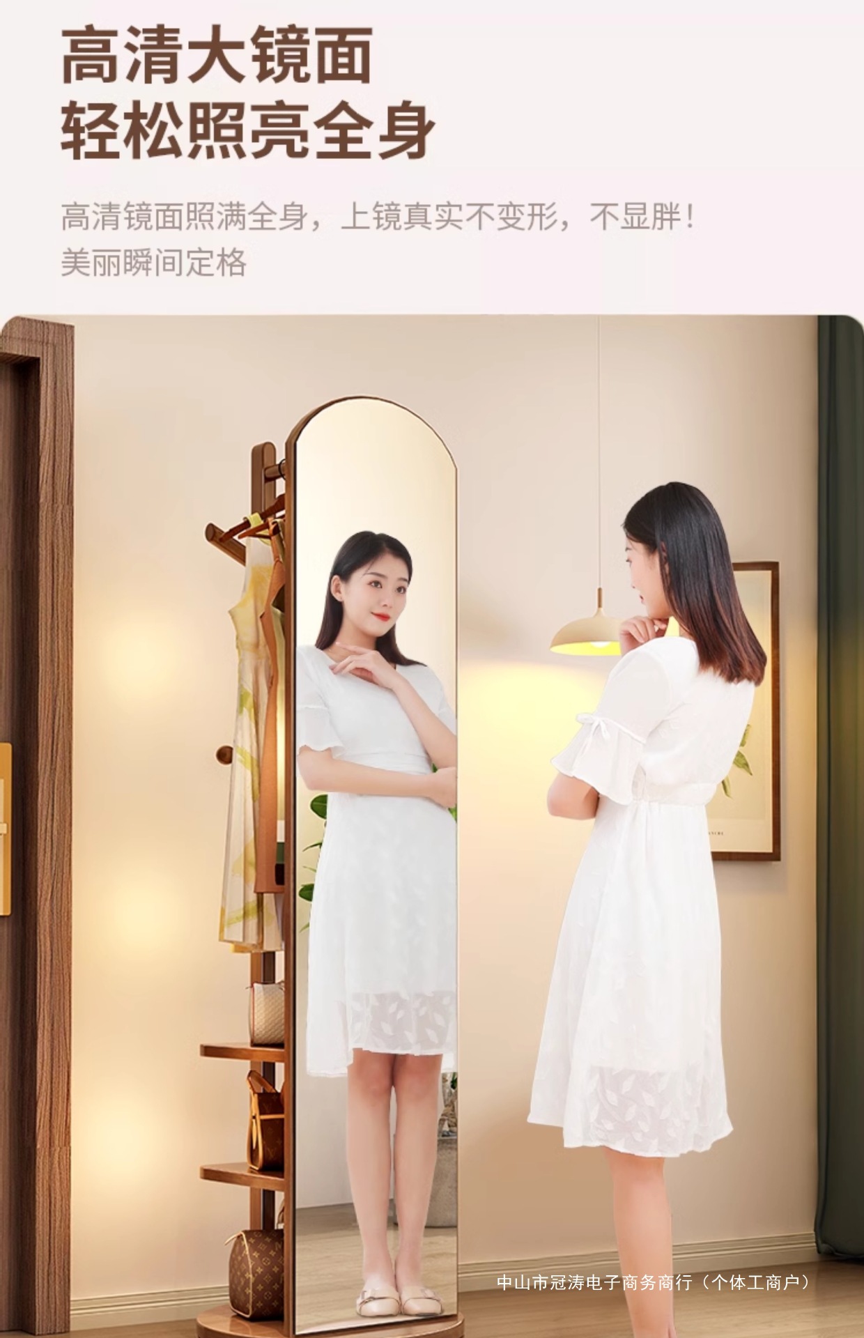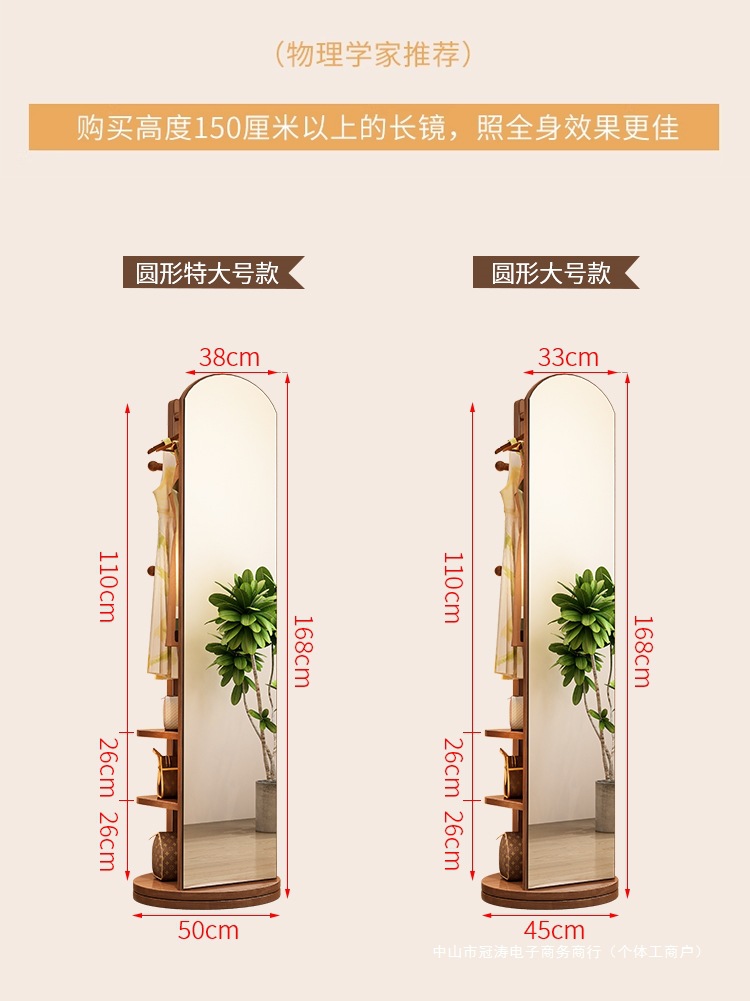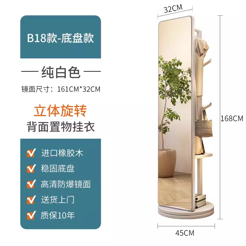 단단한 나무 옷걸이 침실 바닥 옷걸이 거울 통합 거실 홈 이동식 다기능 스토리지 랙