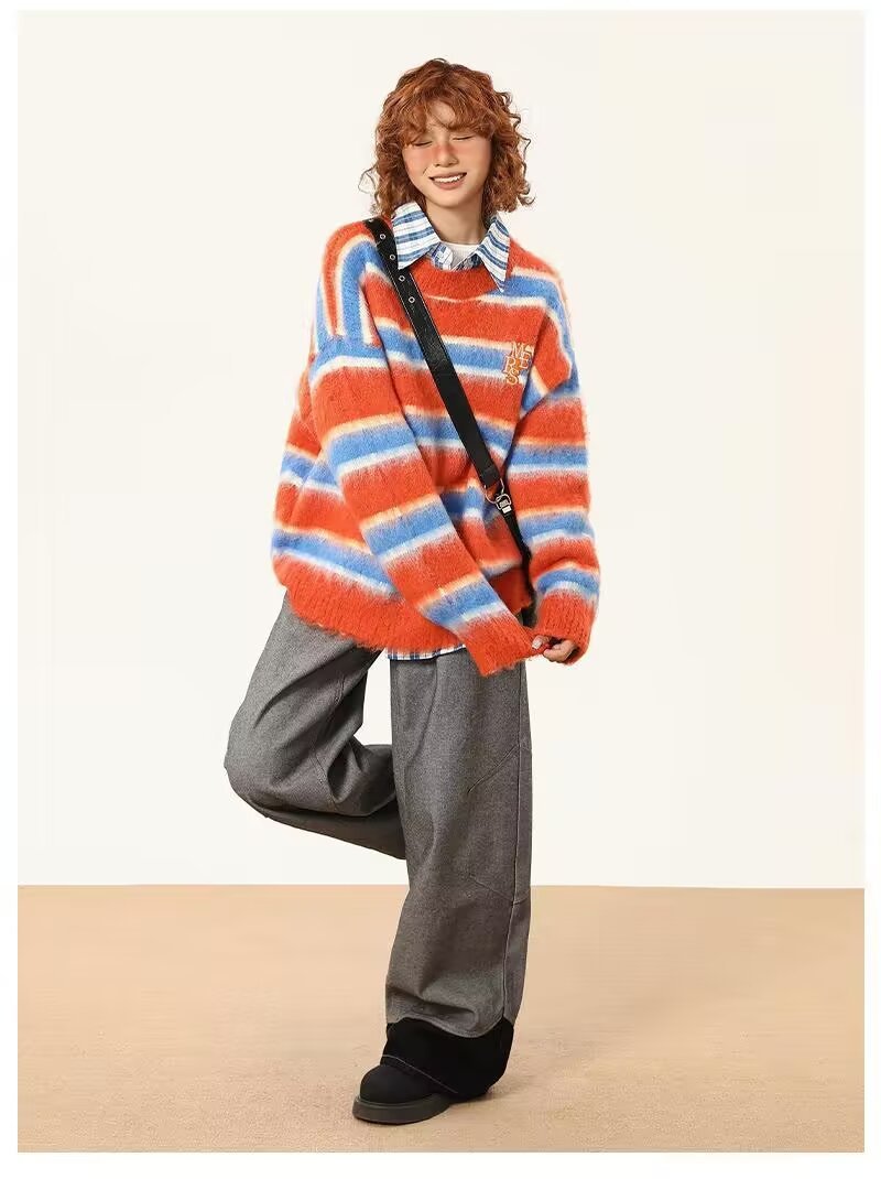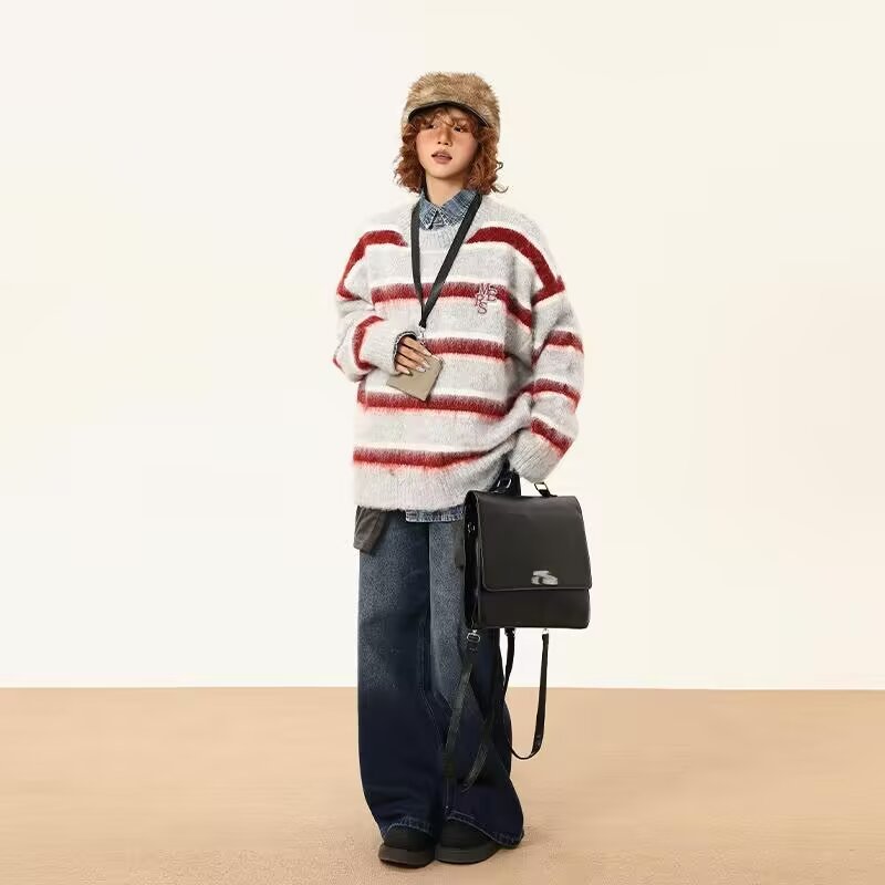 미국식 단색 폴로 셔츠 스웨터 남성용 가을 겨울 트렌디 브랜드 라운드넥 니트웨어 하이 스트리트 다용도 캐주얼 스포츠 상의