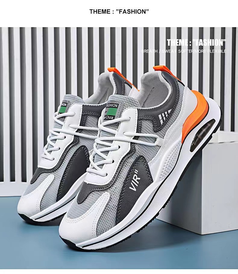 2024 남성 신발 메쉬 통기성 여름 새로운 스플 라이스 스포츠 에어 쿠션 캐주얼 신발 두꺼운 밑창 초경량 부드러운 밑창 아빠 신발스토어 가기
