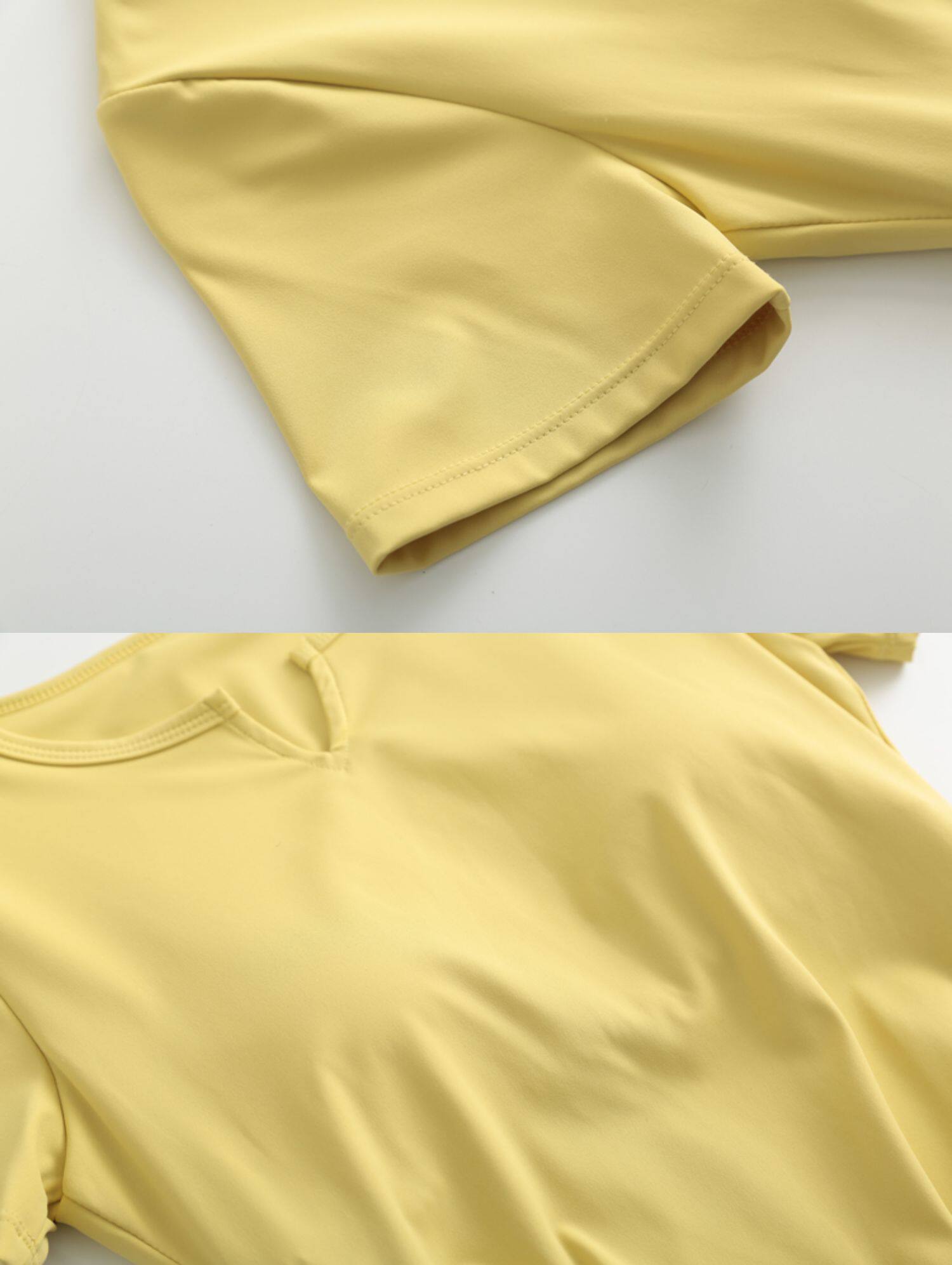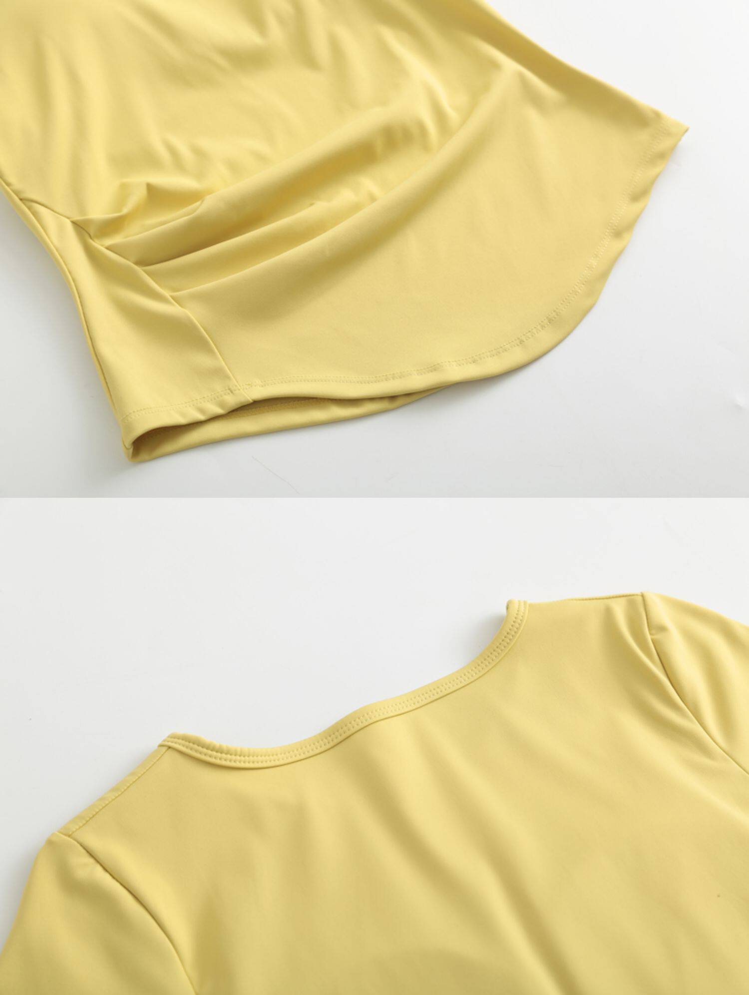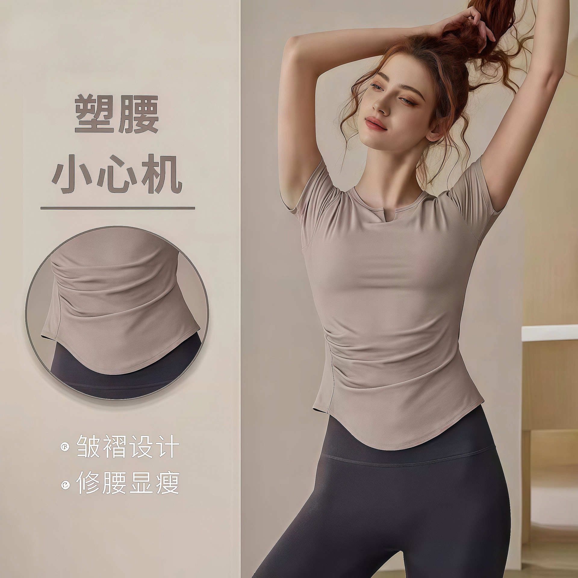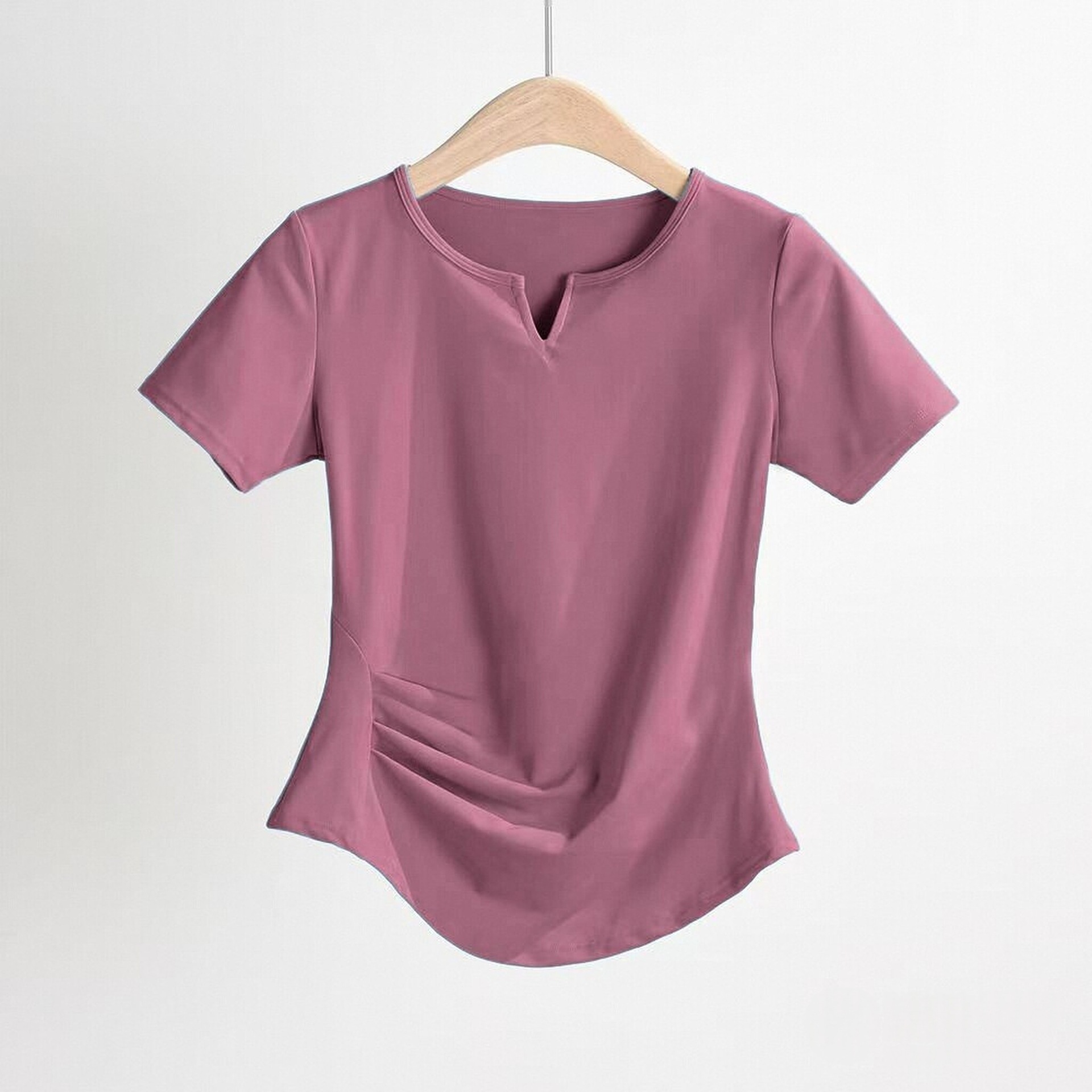 제이지펜 V넥 속건 반팔 티셔츠 주름 장식 허리 스포츠웨어 여름 러닝 피트니스 요가복 통기성 속건