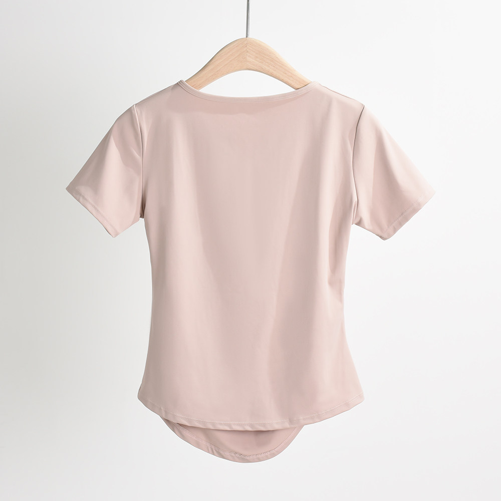 제이지펜 V넥 속건 반팔 티셔츠 주름 장식 허리 스포츠웨어 여름 러닝 피트니스 요가복 통기성 속건스토어 가기