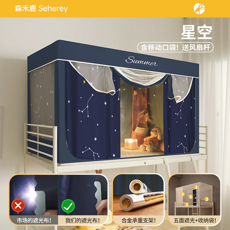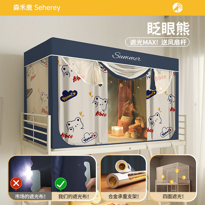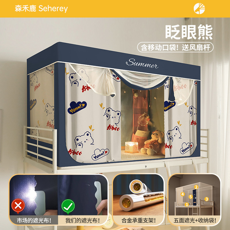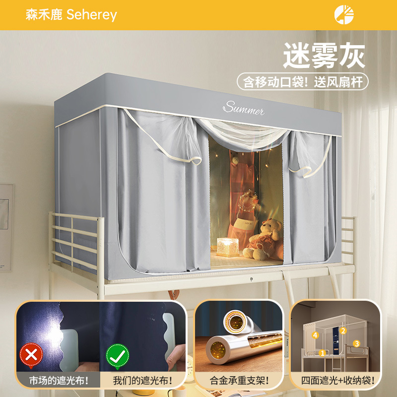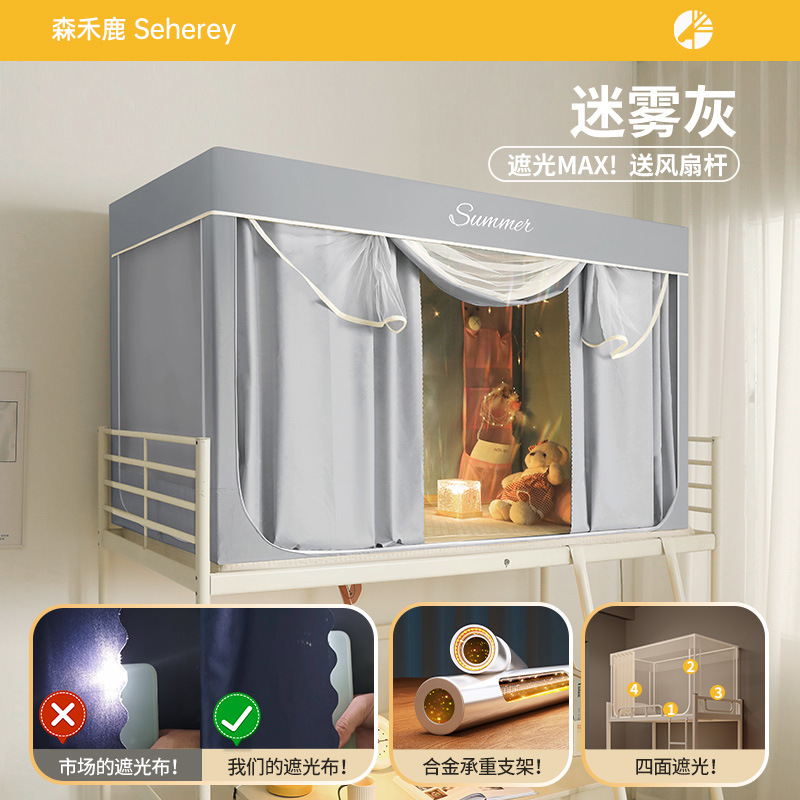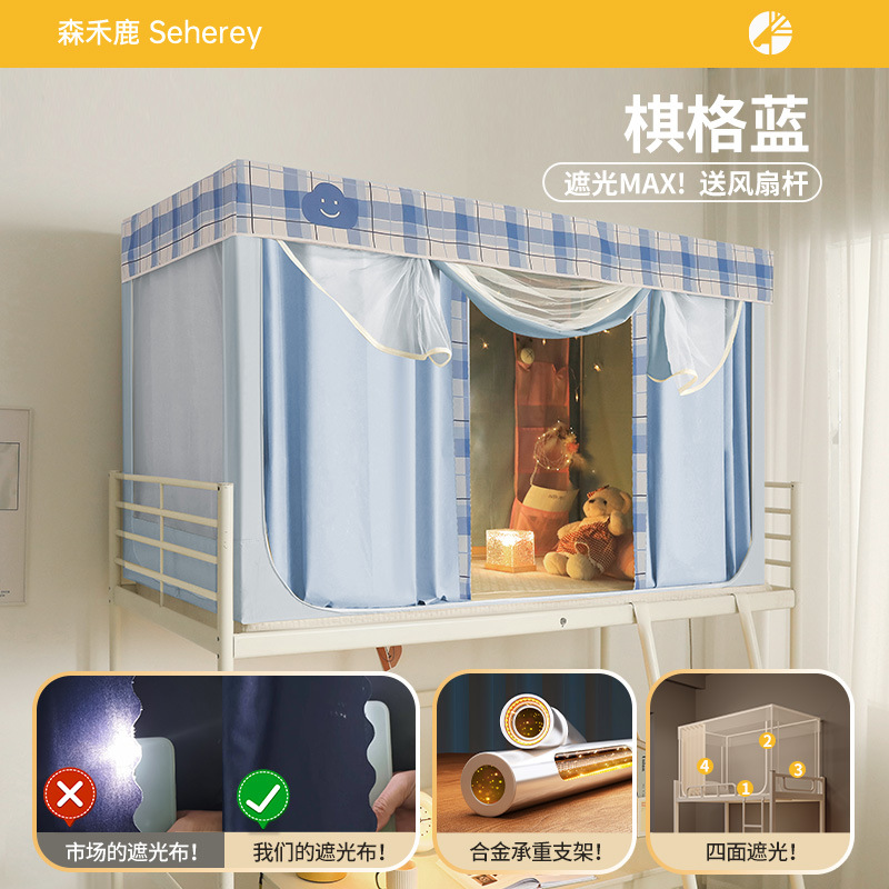 새로운 업그레이드된 방음 및 차광 모기장 학생 이층 침대 두꺼워지고 따뜻한 올인원 침대 커튼스토어 가기