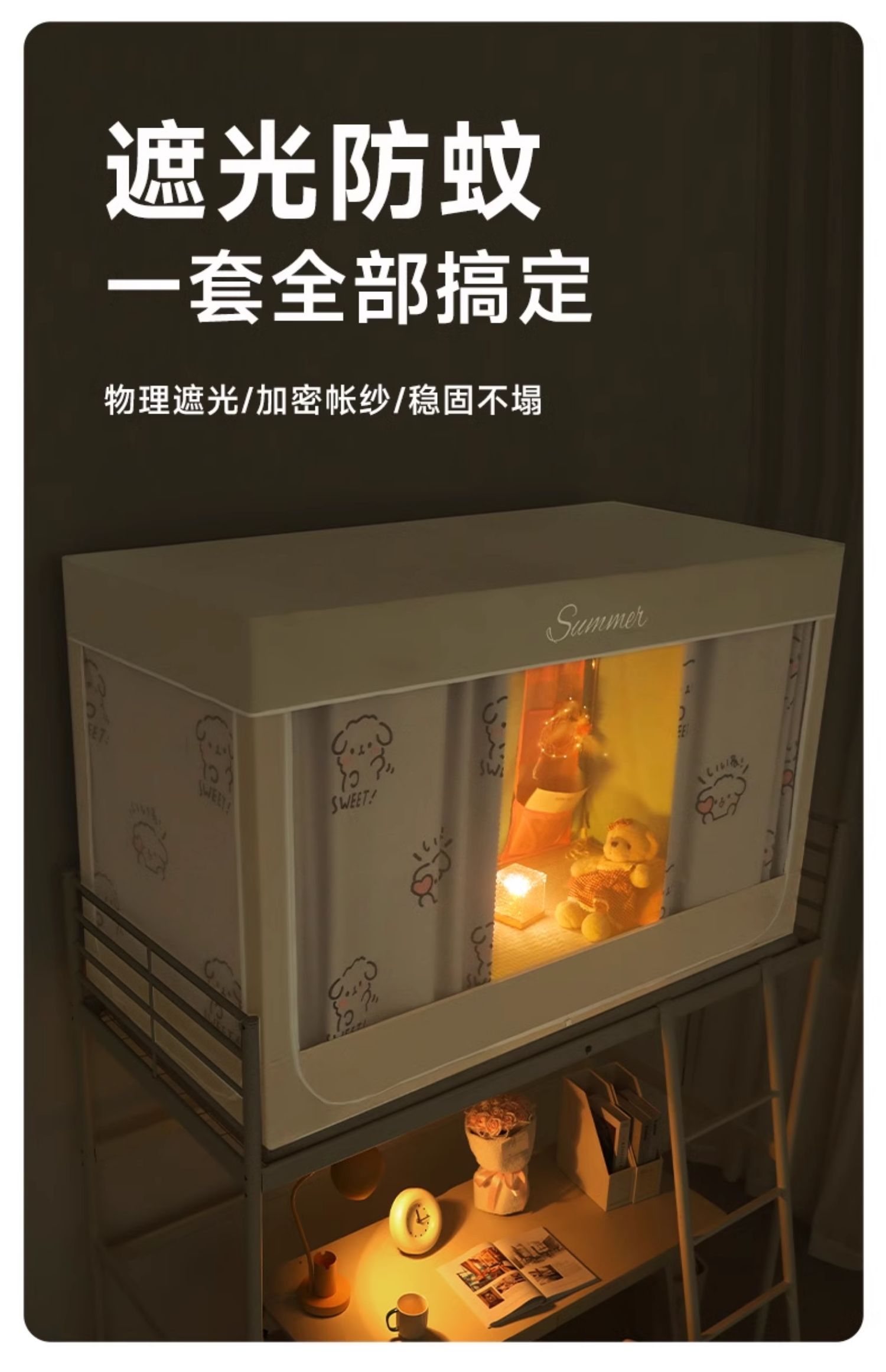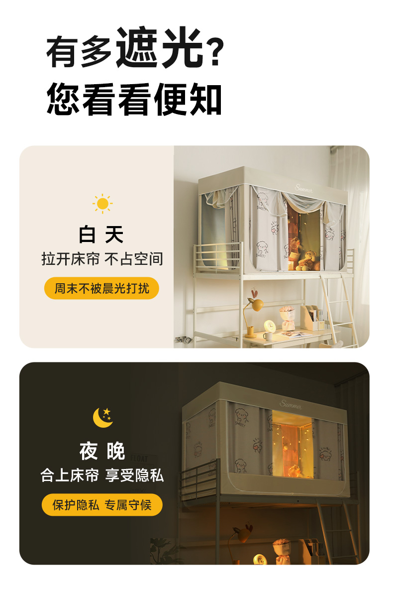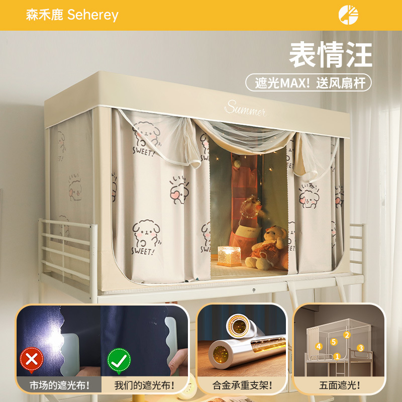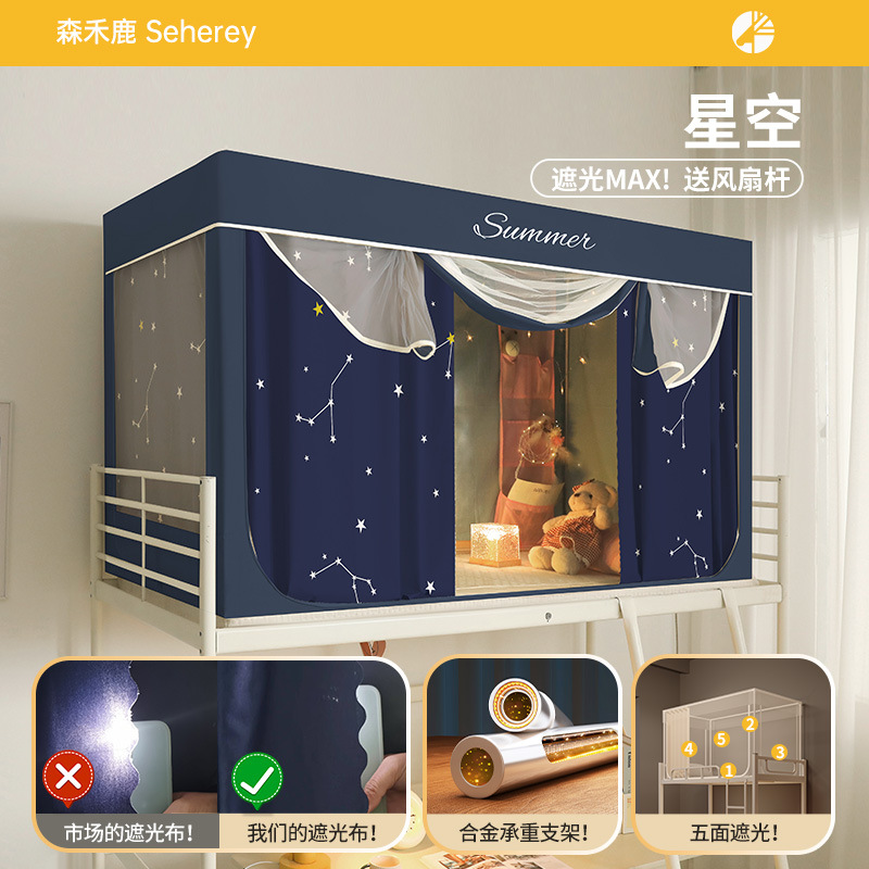 새로운 업그레이드된 방음 및 차광 모기장 학생 이층 침대 두꺼워지고 따뜻한 올인원 침대 커튼스토어 가기