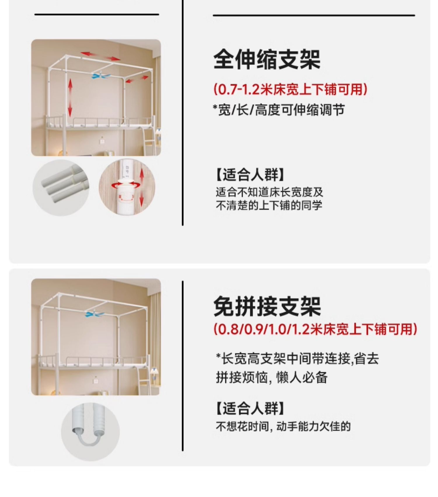 • 0.8m 침대 - 2층 침대용 범용 [높은 신축 브래킷] 190*80*높이 90~120₲