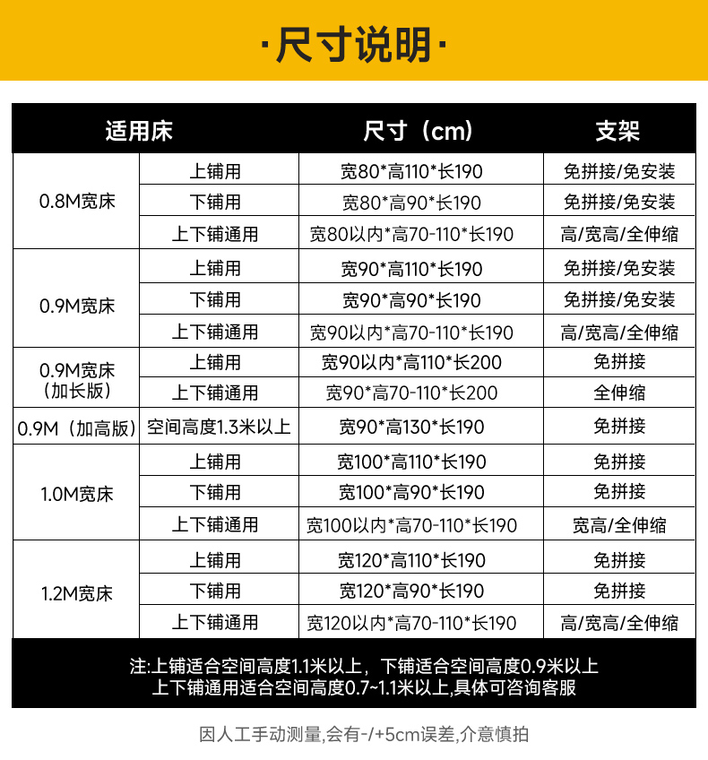 • 0.8~0.9m 침대 - 상하 범용 3도어 [폭 및 높이 텔레스코픽] 190*70~90*높이 90~120₲