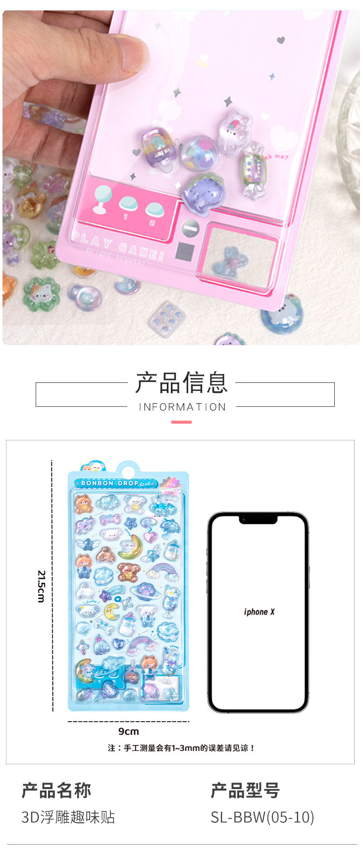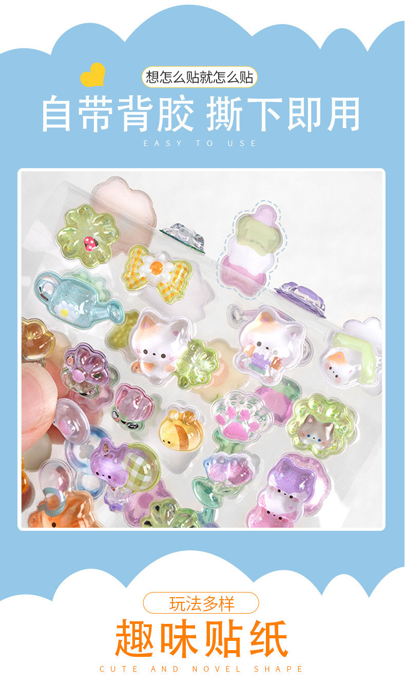 고급스러운 2세대 만화 3D 입체 양각 스티커 중공 스티커 귀여운 보상 입체 스티커 입체 도매스토어 가기
