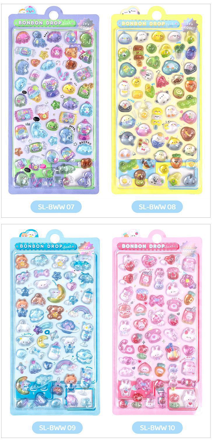 • 만화 엠보싱 스티커 [6가지 스타일 풀 세트]