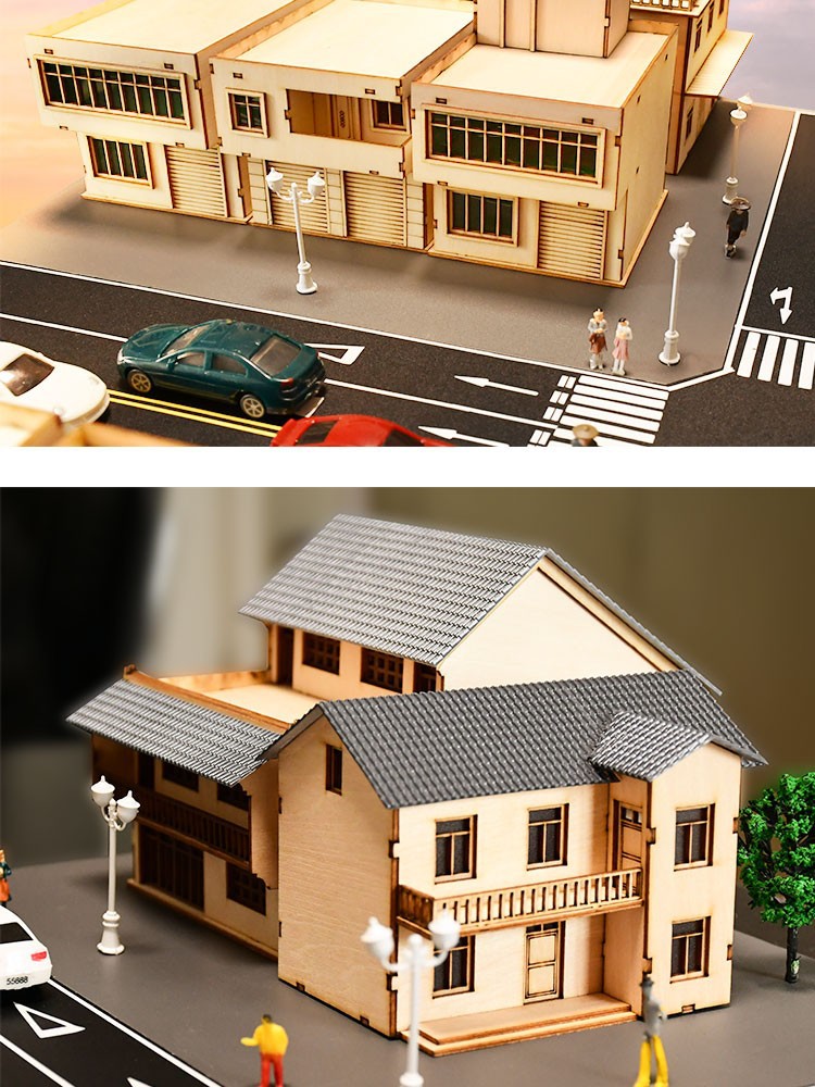 미니어처 하우스 모델 완제품, 시뮬레이션 거리 장면, 주거용 건물 사진 소품, 모래 테이블, 소규모 건물스토어 가기
