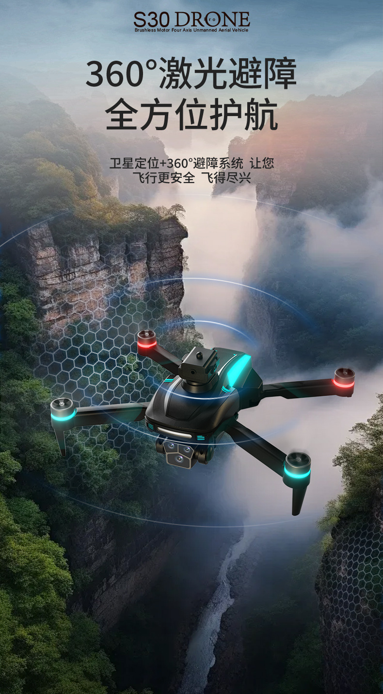 새로운 고급형 S30, 화면이 있는 원격 제어, 초고화질 전문가용 GPS 광류 위치 추적 드론, 긴 배터리 수명 및 장애물 회피 기능 탑재스토어 가기