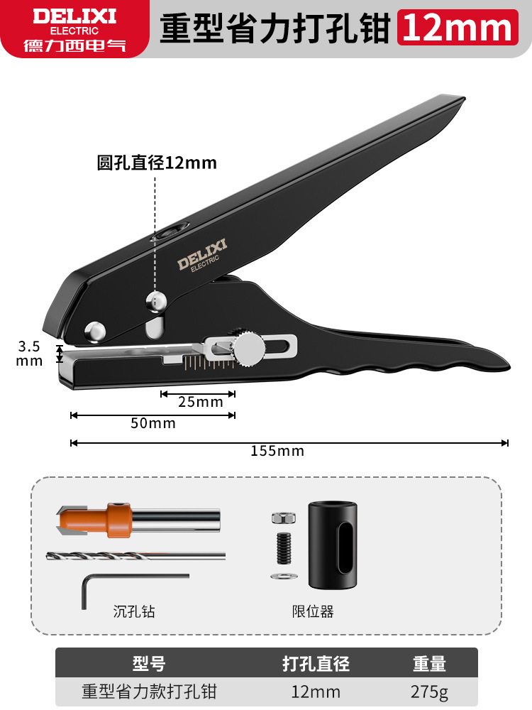 • [고강도 및 노동력 절약 모델] 12mm 펀칭 플라이어 + 8mm 카운터싱크 드릴 비트 + 리미터