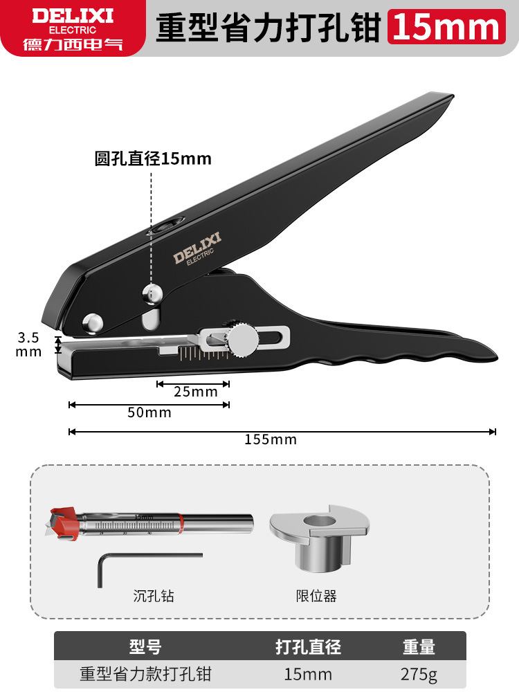 • [고강도 및 노동력 절약 모델] 15mm 펀칭 플라이어 + 15mm 카운터싱크 드릴 비트 + 리미터