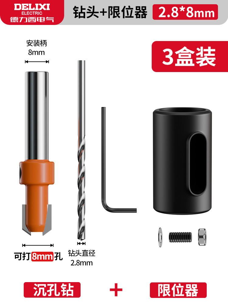 • [3개 팩] 2.8x8mm 카운터싱크 드릴 비트 + 리미터
