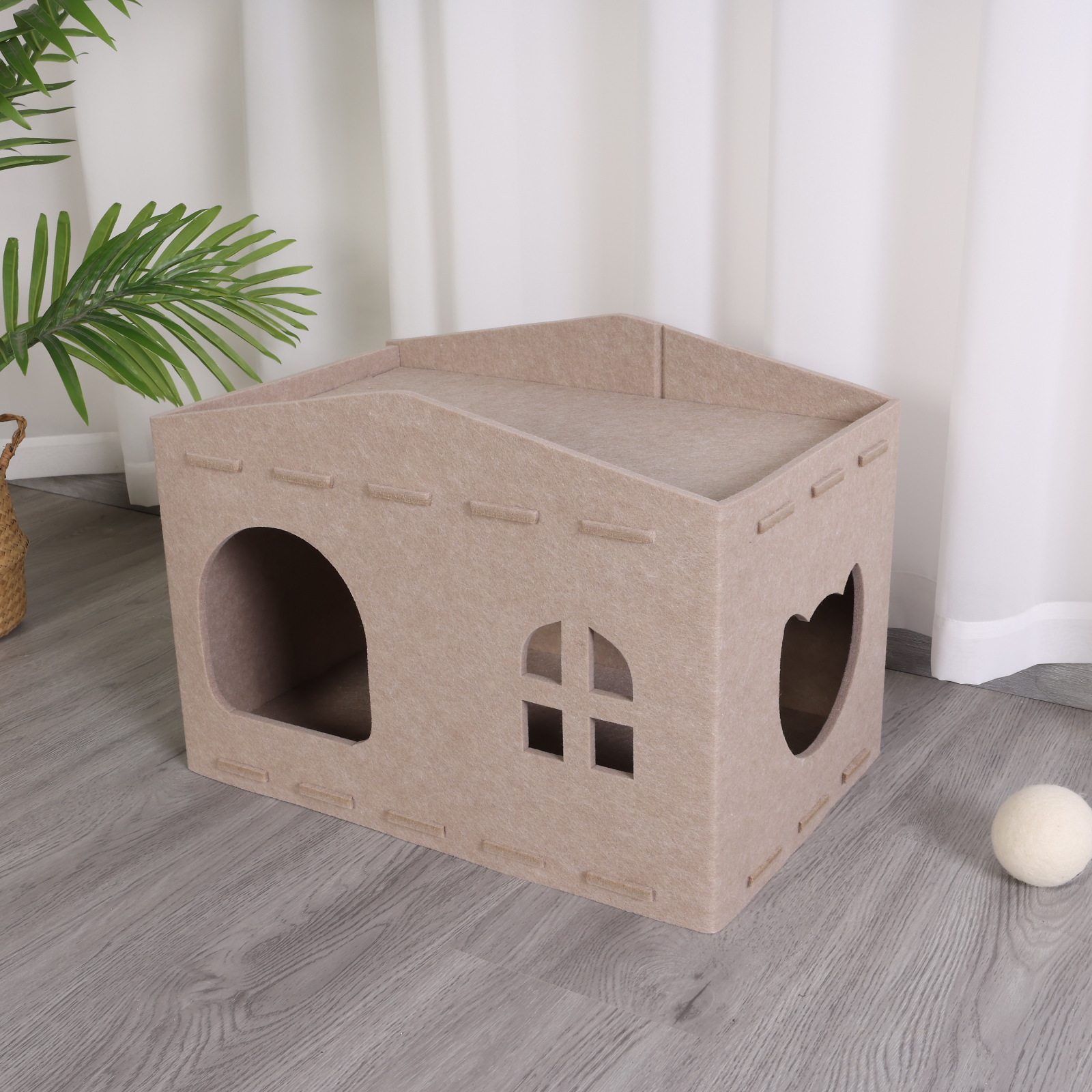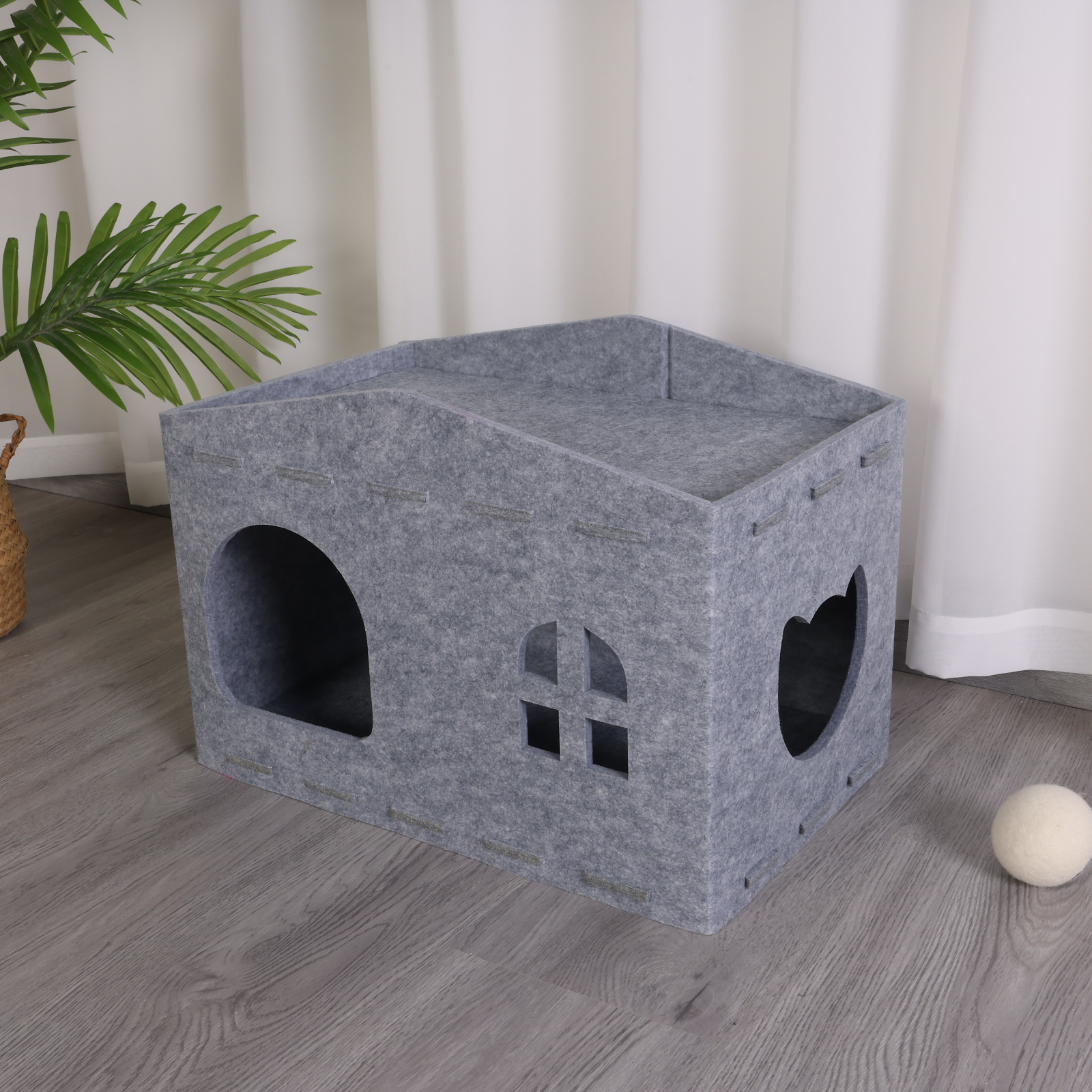 고양이 펠트 이중 목적 고양이 둥지 및 고양이 스크래치 보드 일체형 긁힘 방지 및 내마모성 고양이 빌라 반 밀폐형 고양이 집