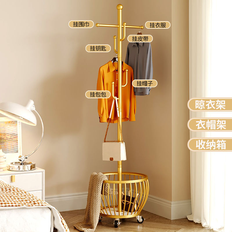 침실 라이트 럭셔리 플로어 스탠딩 코트 랙 침대 옆 옷 걸이 새로운 라운드 수납 가능 두꺼운 두꺼운 옷 걸이