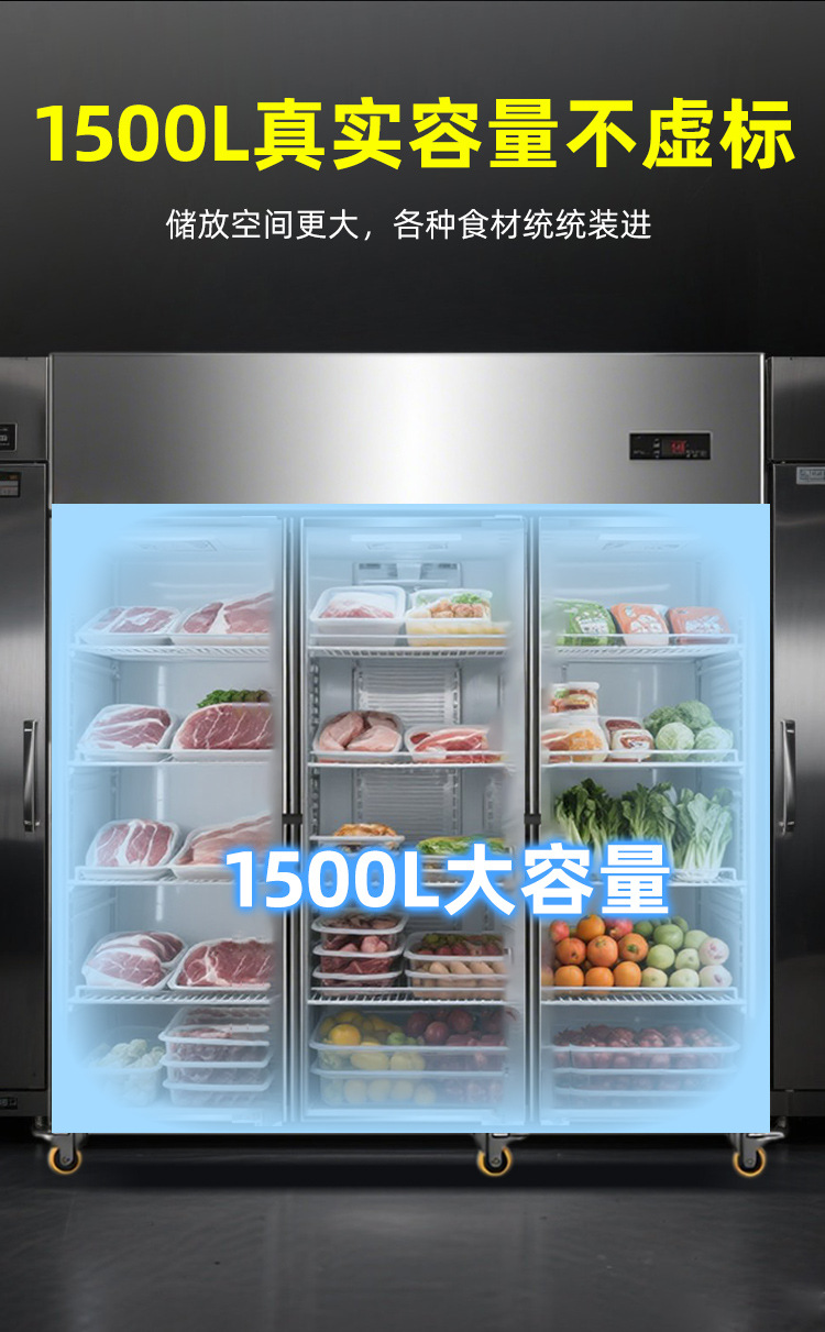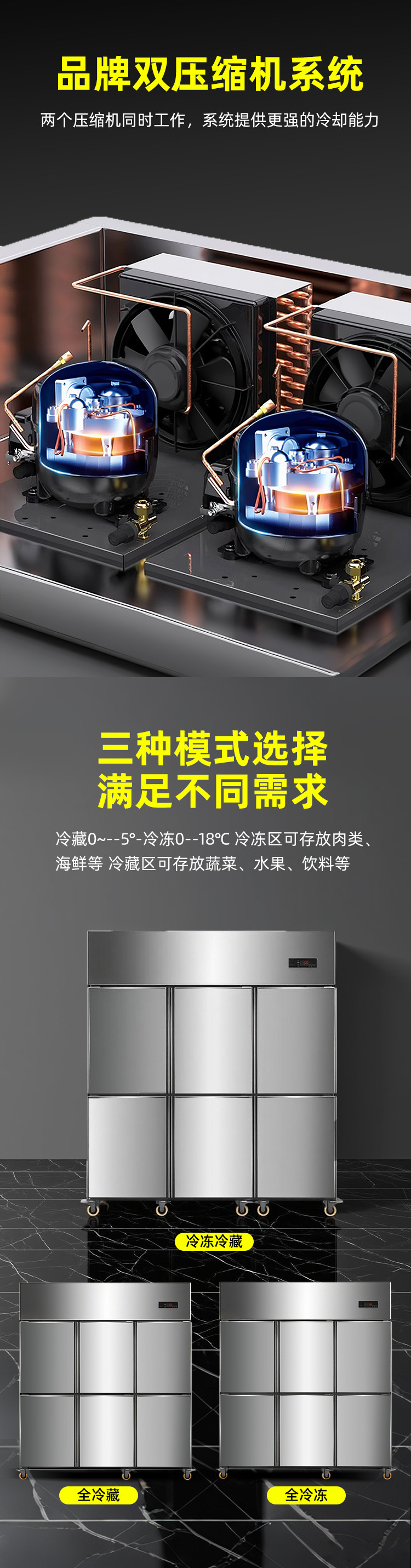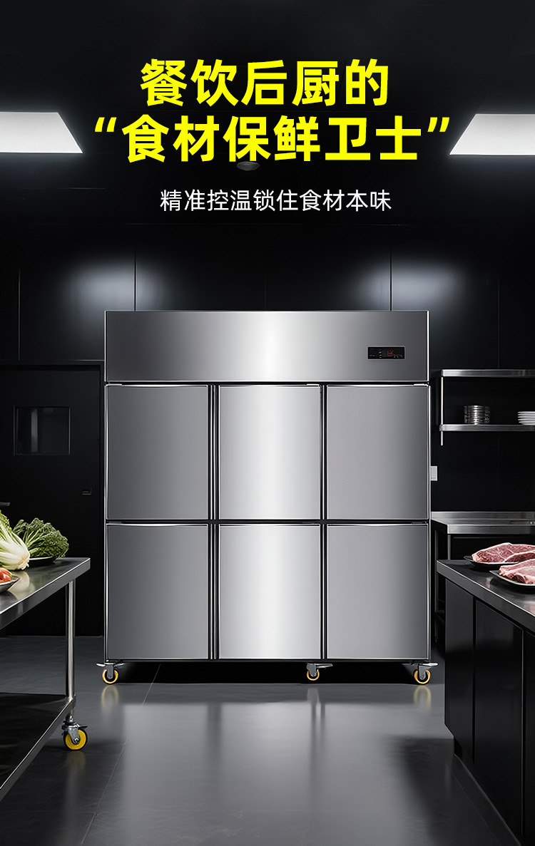 상업용 6도어 냉동고 이중 온도 스테인레스 스틸 레스토랑 주방 냉동고 신선 유지 대용량 냉동고 상업용 냉장고