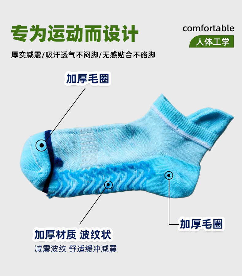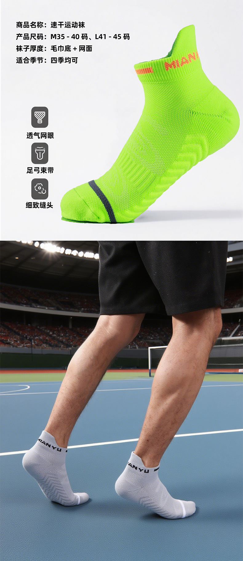 마라톤 러닝 양말 속건성 수건 바닥 스포츠 양말 마찰 방지 땀 흡수 짧은 튜브 야외 등산 양말
