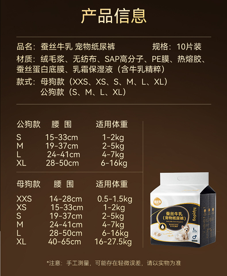 강아지 기저귀 블랙 골드 실크 밀크 애완동물 생리 팬티 강아지 기저귀 생리 팬티 일회용 아줌마 냅킨스토어 가기