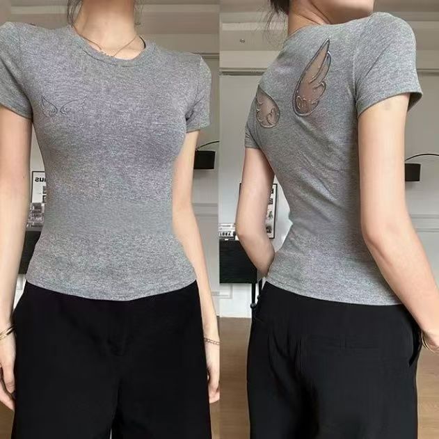 여름 슬림핏 허리 핫걸 스타일 여성용 백 할로우 반팔 티셔츠, 슬림하고 다재다능하며 독특하고 시크한 탑, 유럽 제품