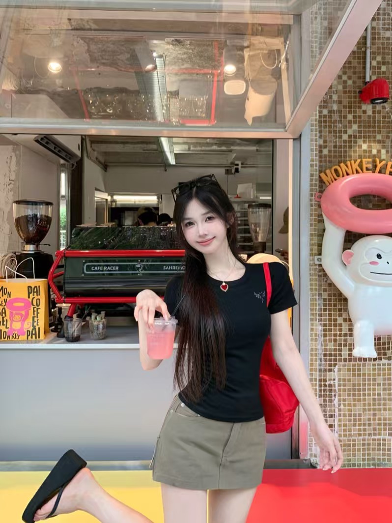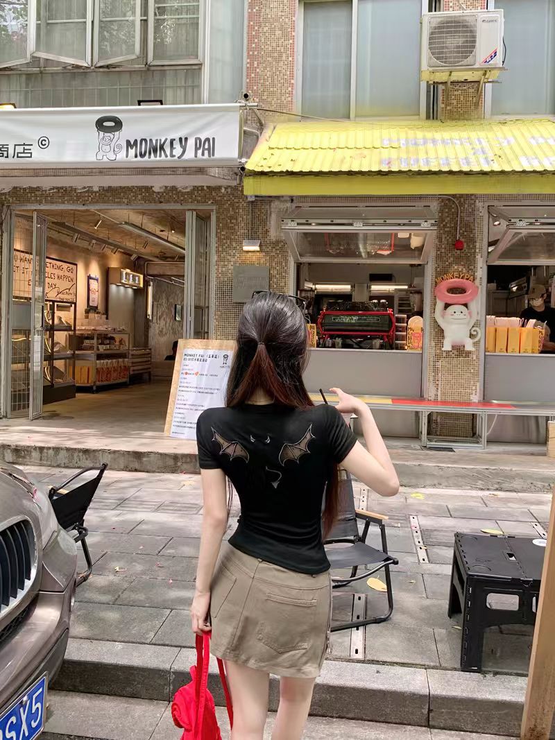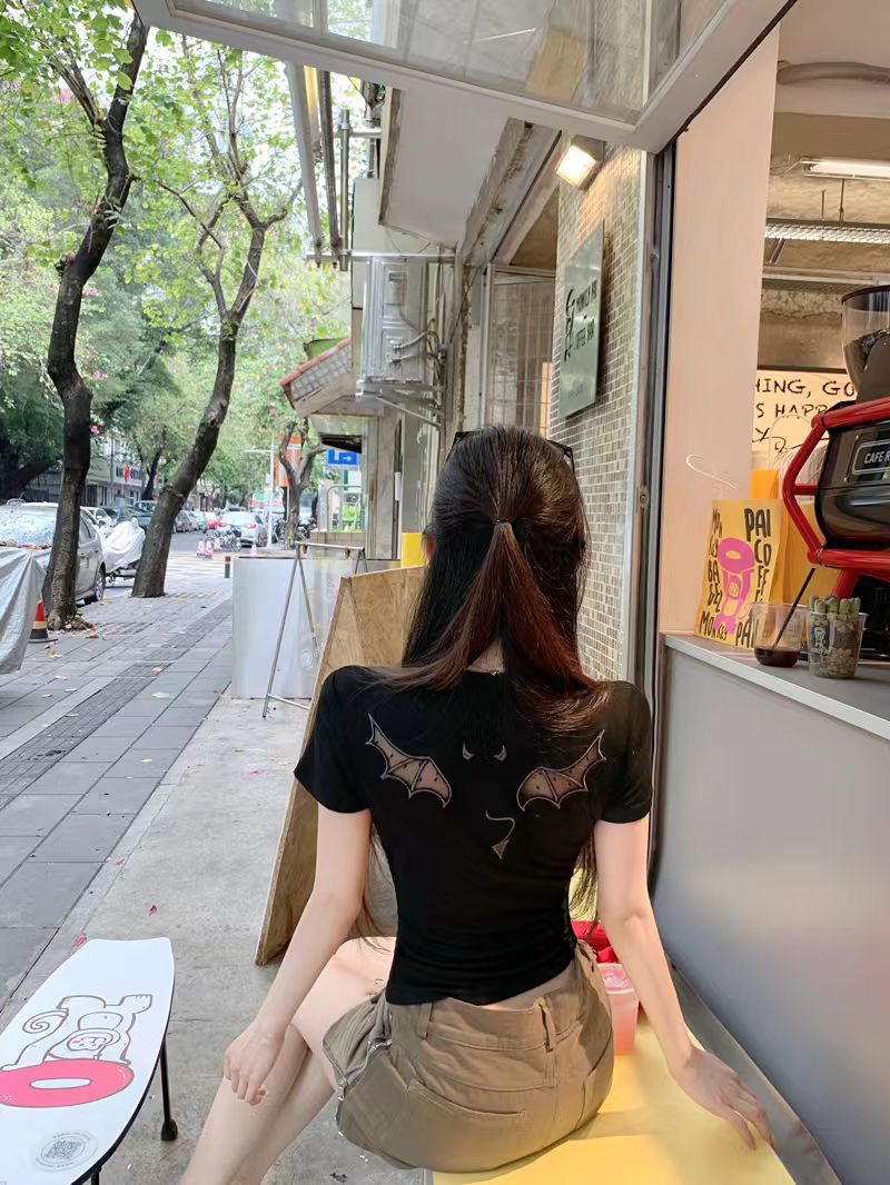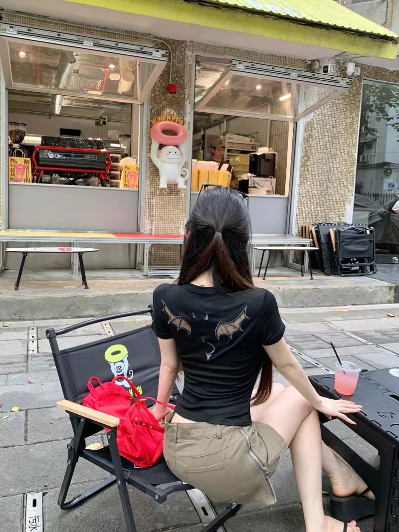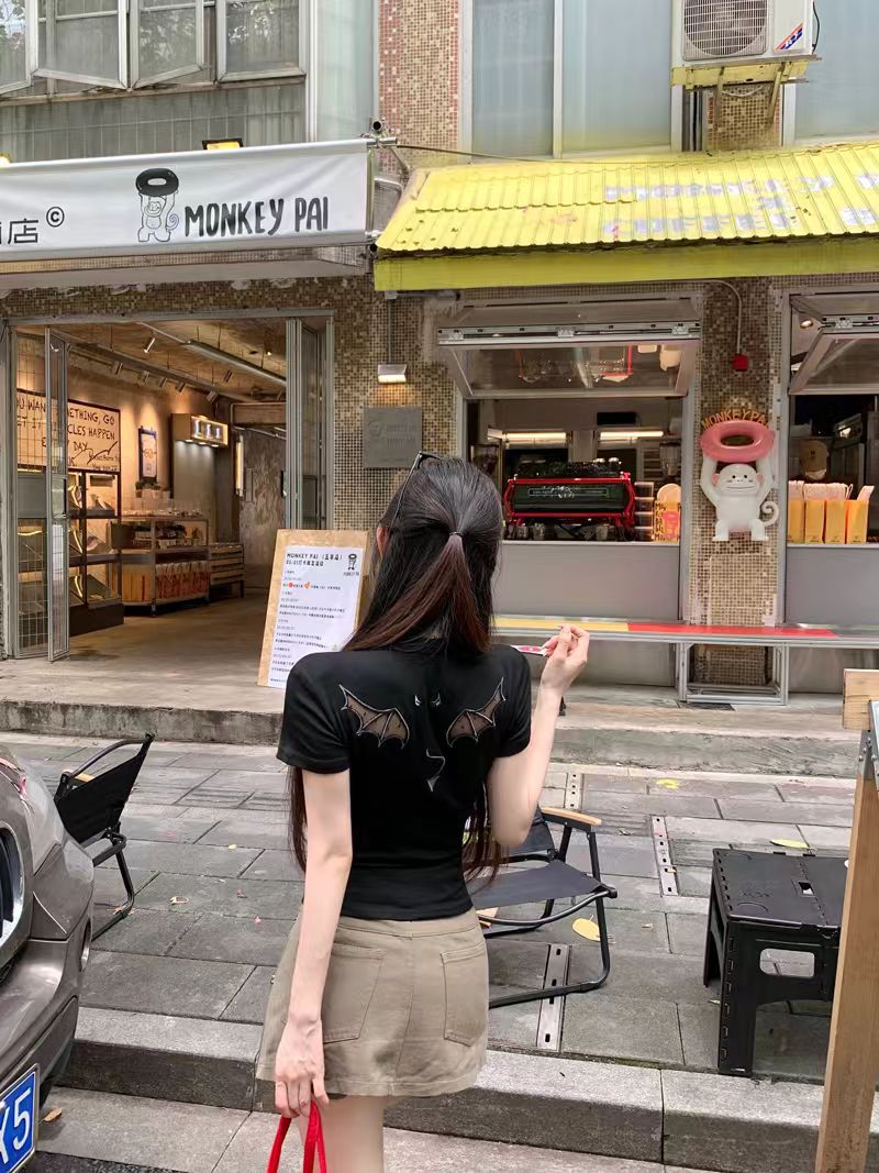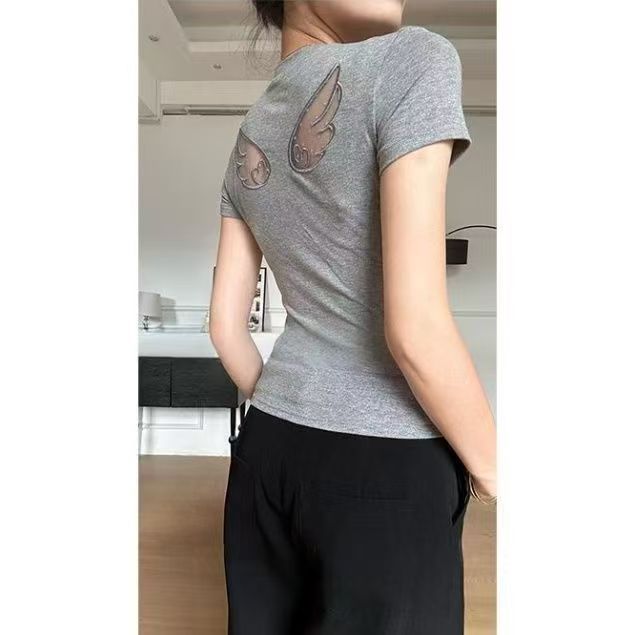 여름 슬림핏 허리 핫걸 스타일 여성용 백 할로우 반팔 티셔츠, 슬림하고 다재다능하며 독특하고 시크한 탑, 유럽 제품스토어 가기