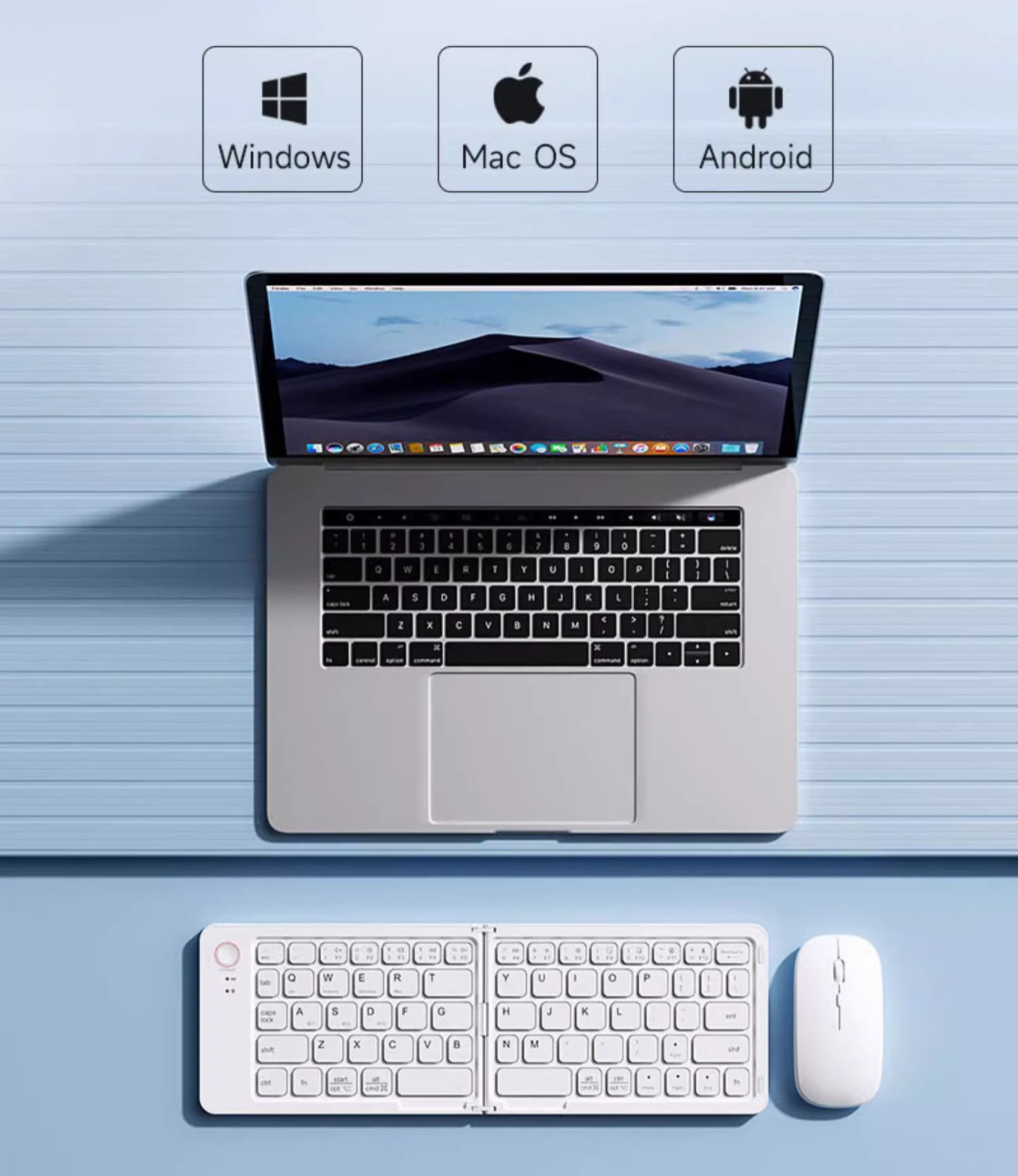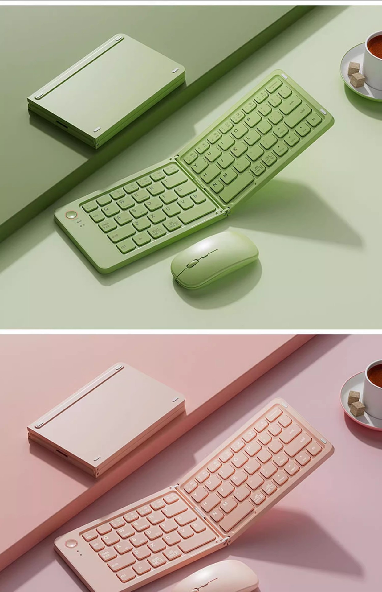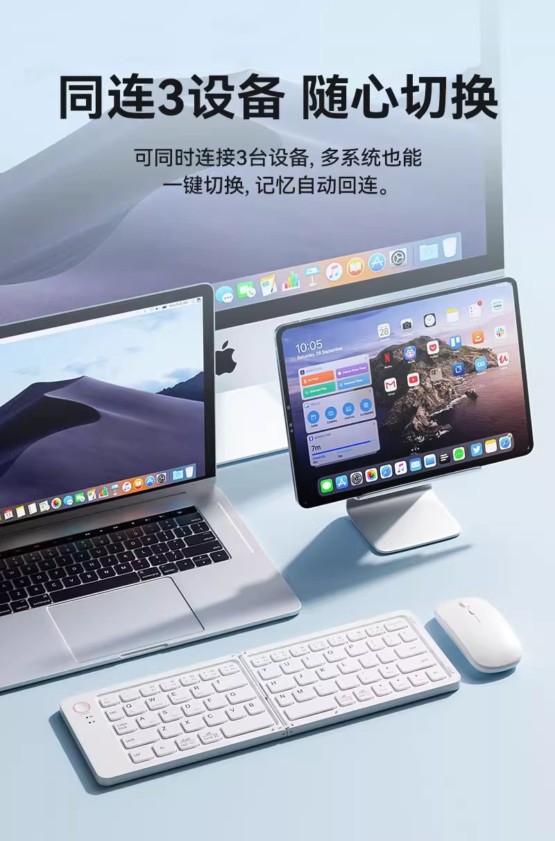 국경 간 인기 판매 Bluetooth 무선 접이식 키보드 및 마우스 세트 다중 장치 노트북 태블릿 접이식 키보드스토어 가기